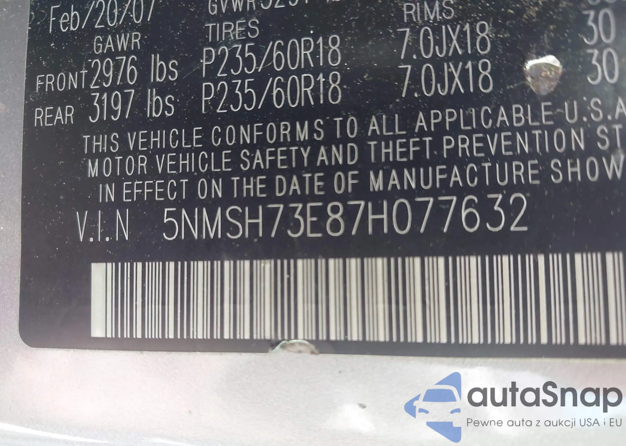 VIN: 5NMSH73E87H077632