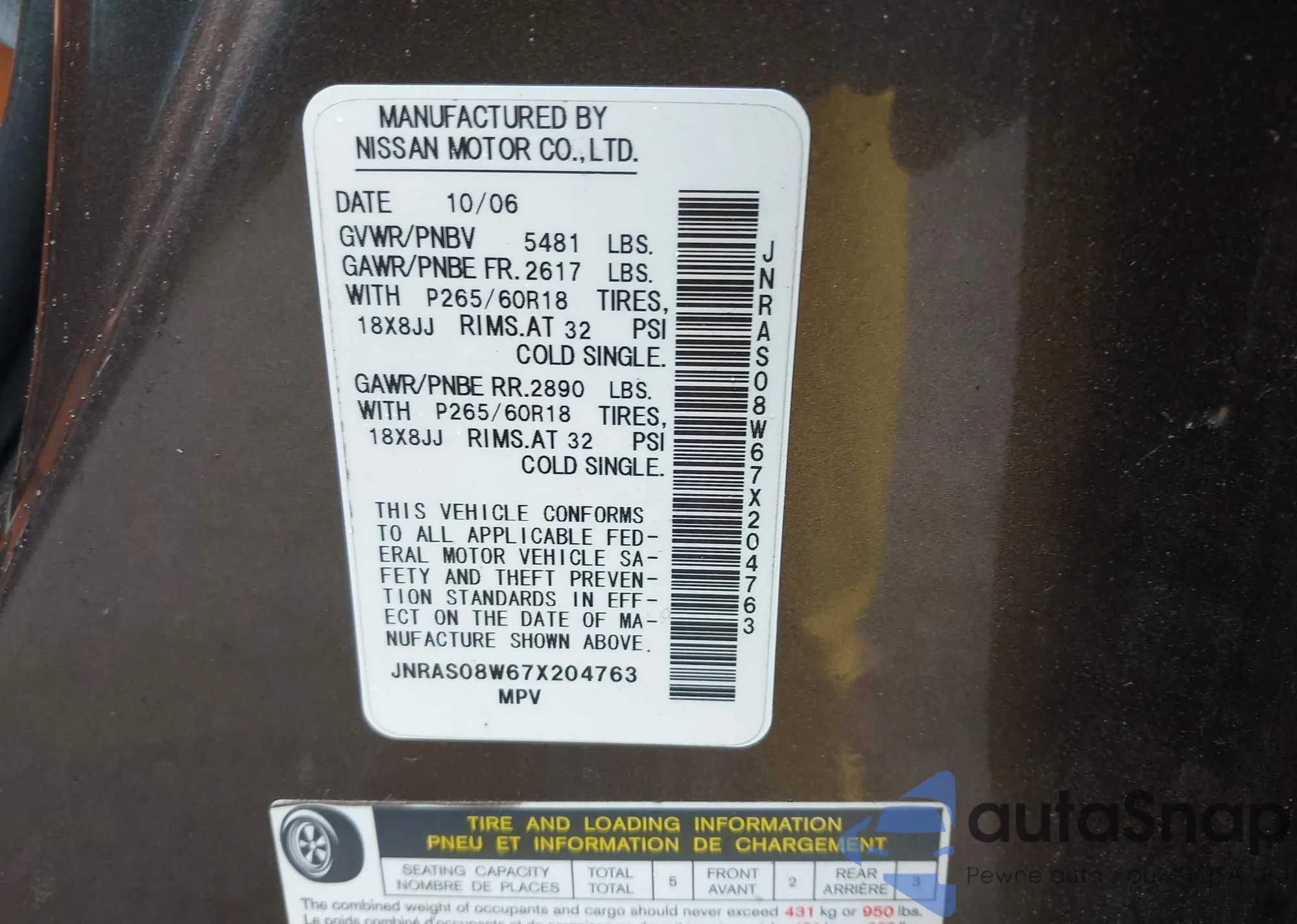 VIN: JNRAS08W67X204763
