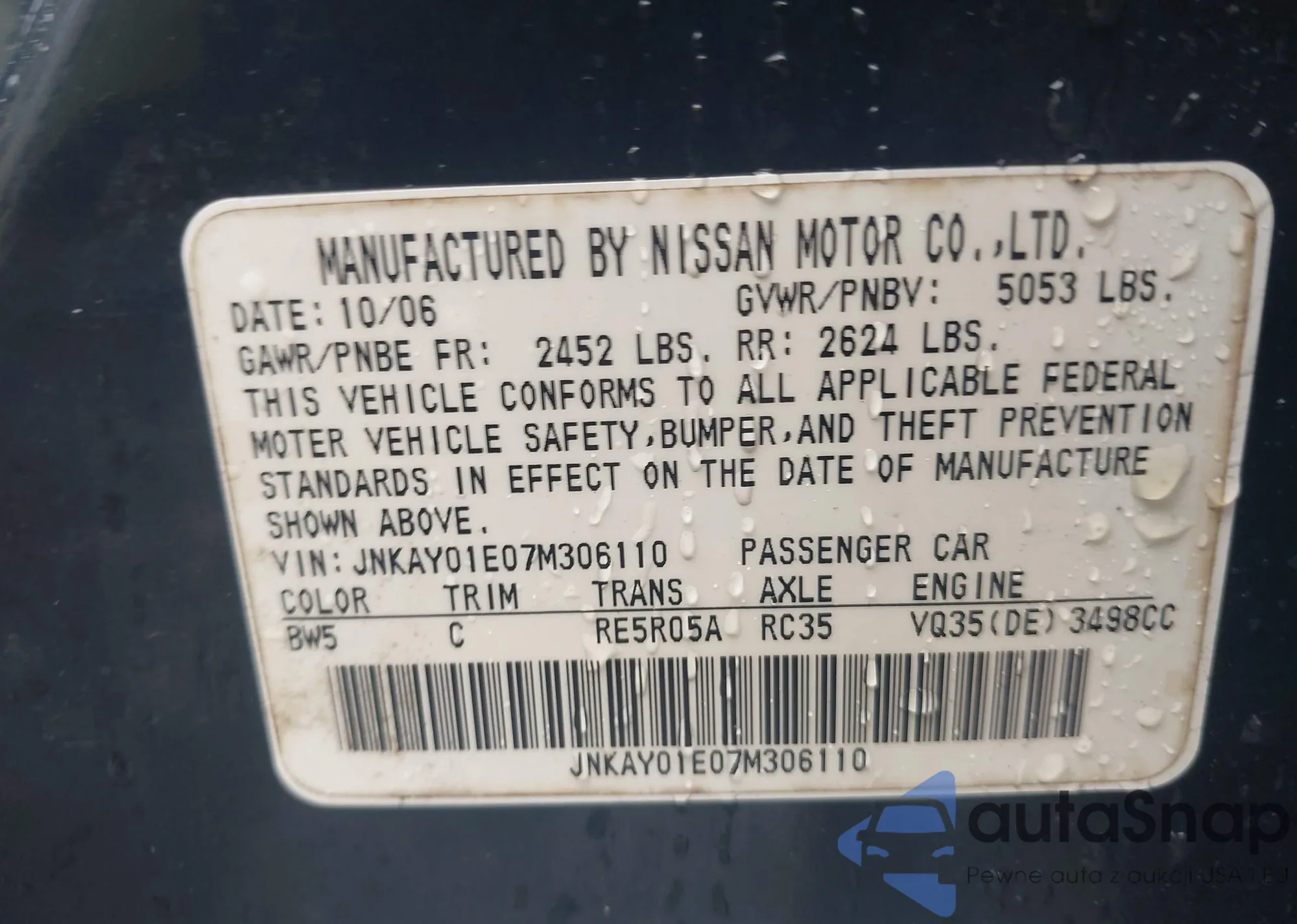 VIN: JNKAY01E07M306110