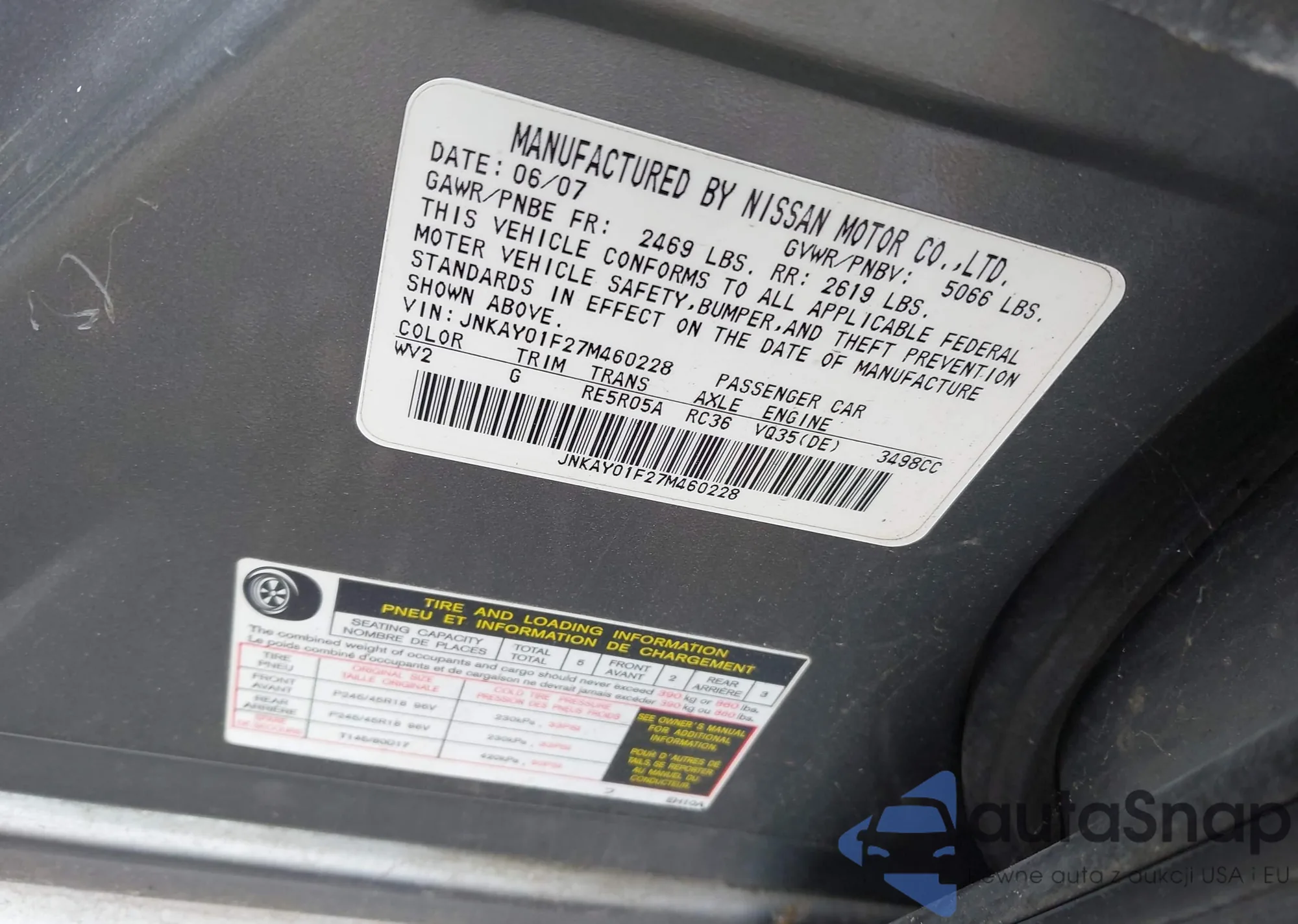 • VIN: JNKAY01F27M460228