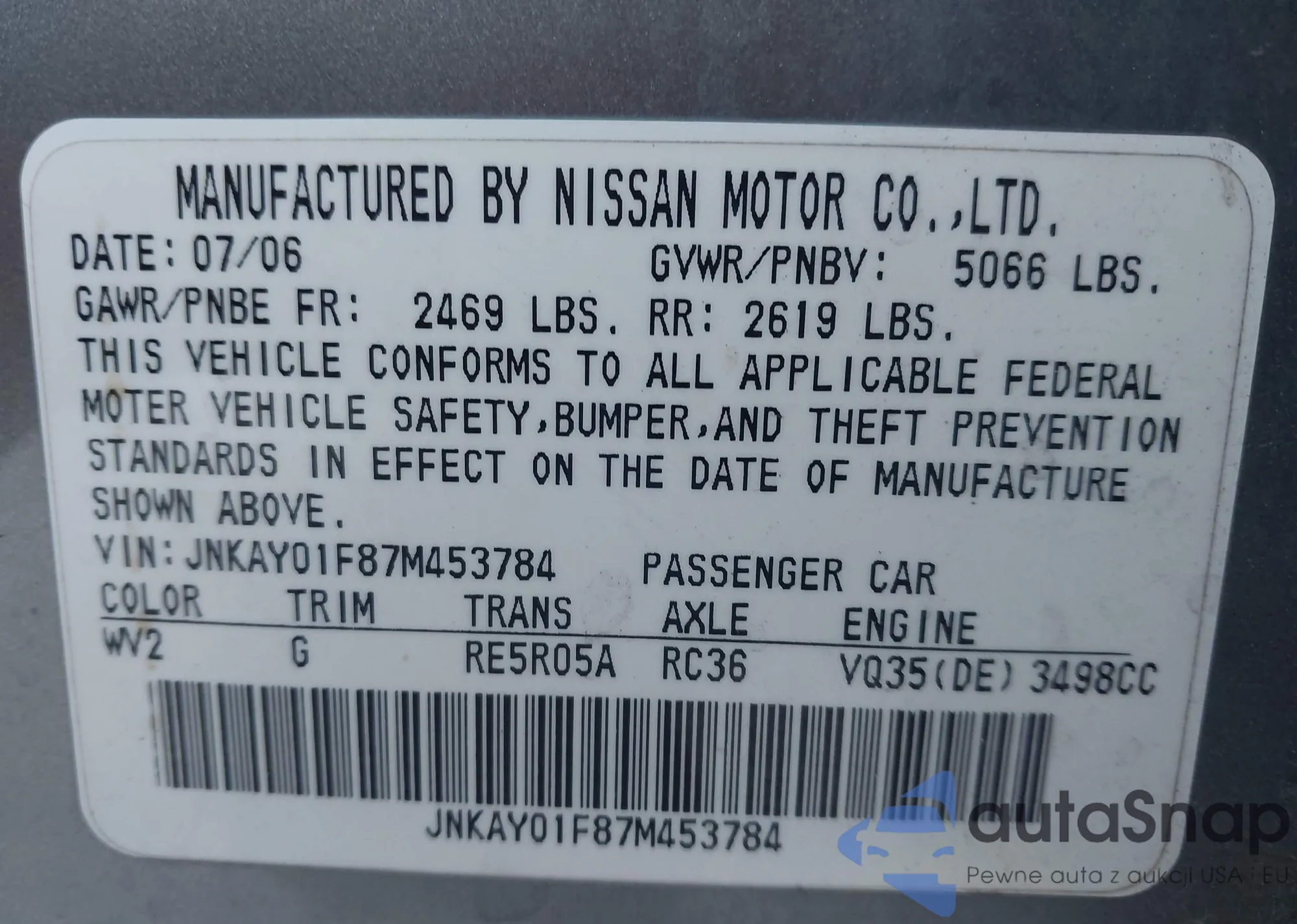 Samochód Infiniti M 2007 (VIN JNKAY01F87M453784) był już licytowany 1 razy i/lub sprzedaje go niezweryfikowany sprzedawca. Zalecamy raport Carfax i potwierdzenie możliwości rejestracji pojazdu przed zakupem.