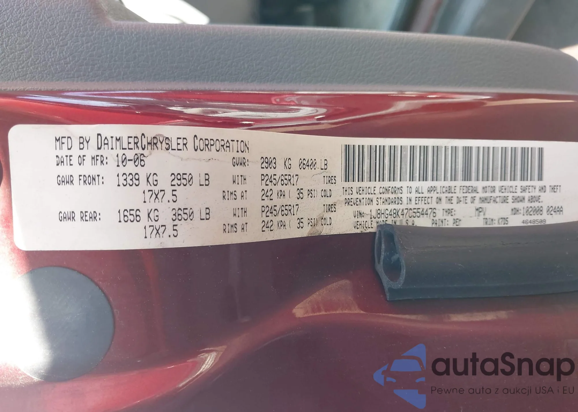 VIN: 1J8HG48K47C554476