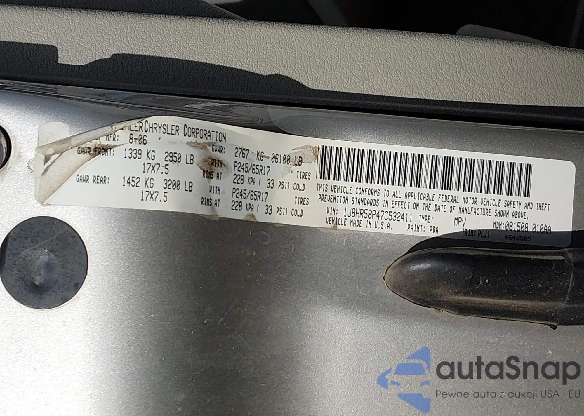 Samochód Jeep Grand Cherokee 2007 (VIN 1J8HR58P47C532411) sprzedaje go niezweryfikowany sprzedawca. Zalecamy raport Carfax i potwierdzenie możliwości rejestracji pojazdu przed zakupem.