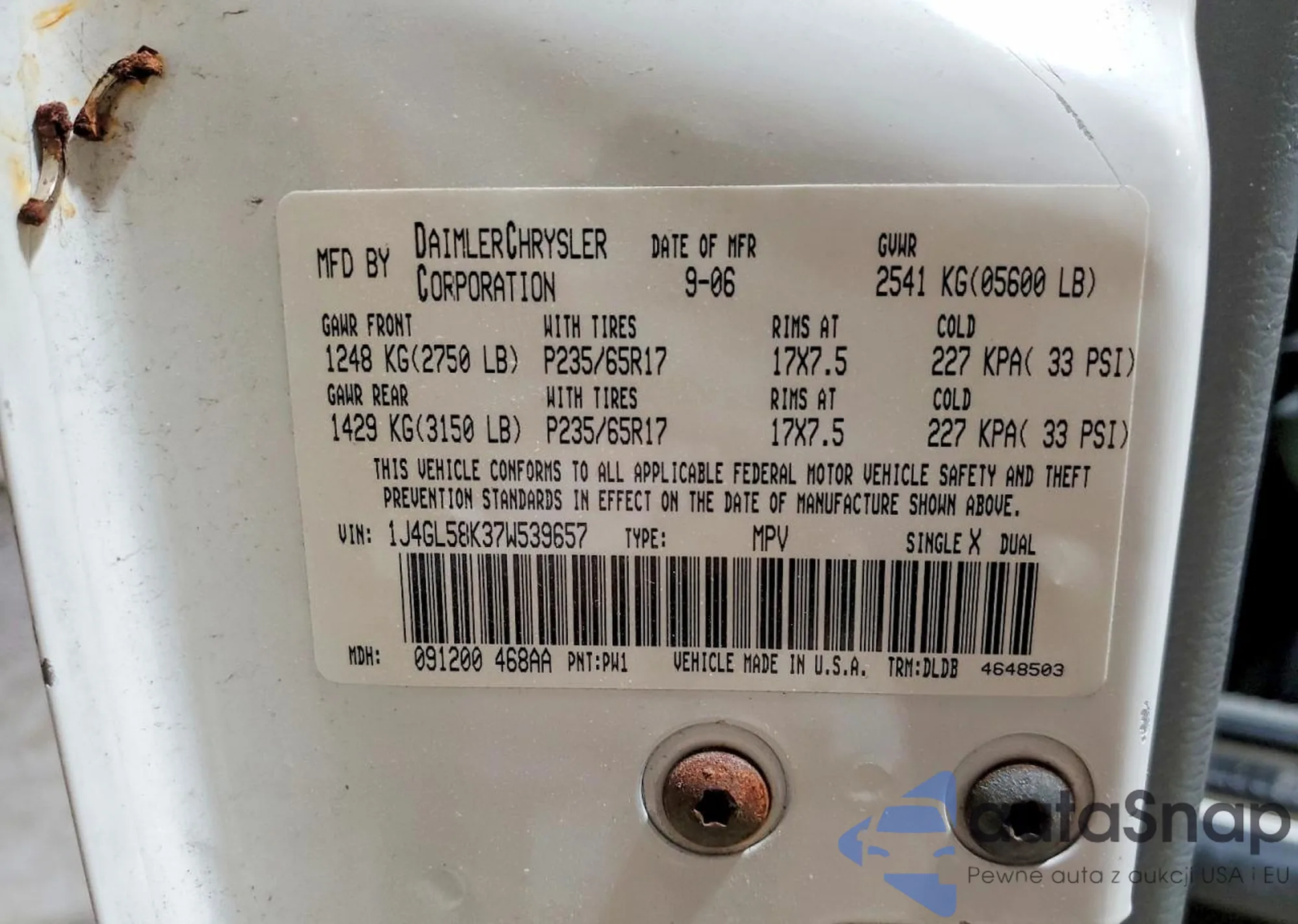 Samochód Jeep Liberty (North America) 2007 (VIN 1J4GL58K37W539657) sprzedaje go niezweryfikowany sprzedawca. Zalecamy raport Carfax i potwierdzenie możliwości rejestracji pojazdu przed zakupem.