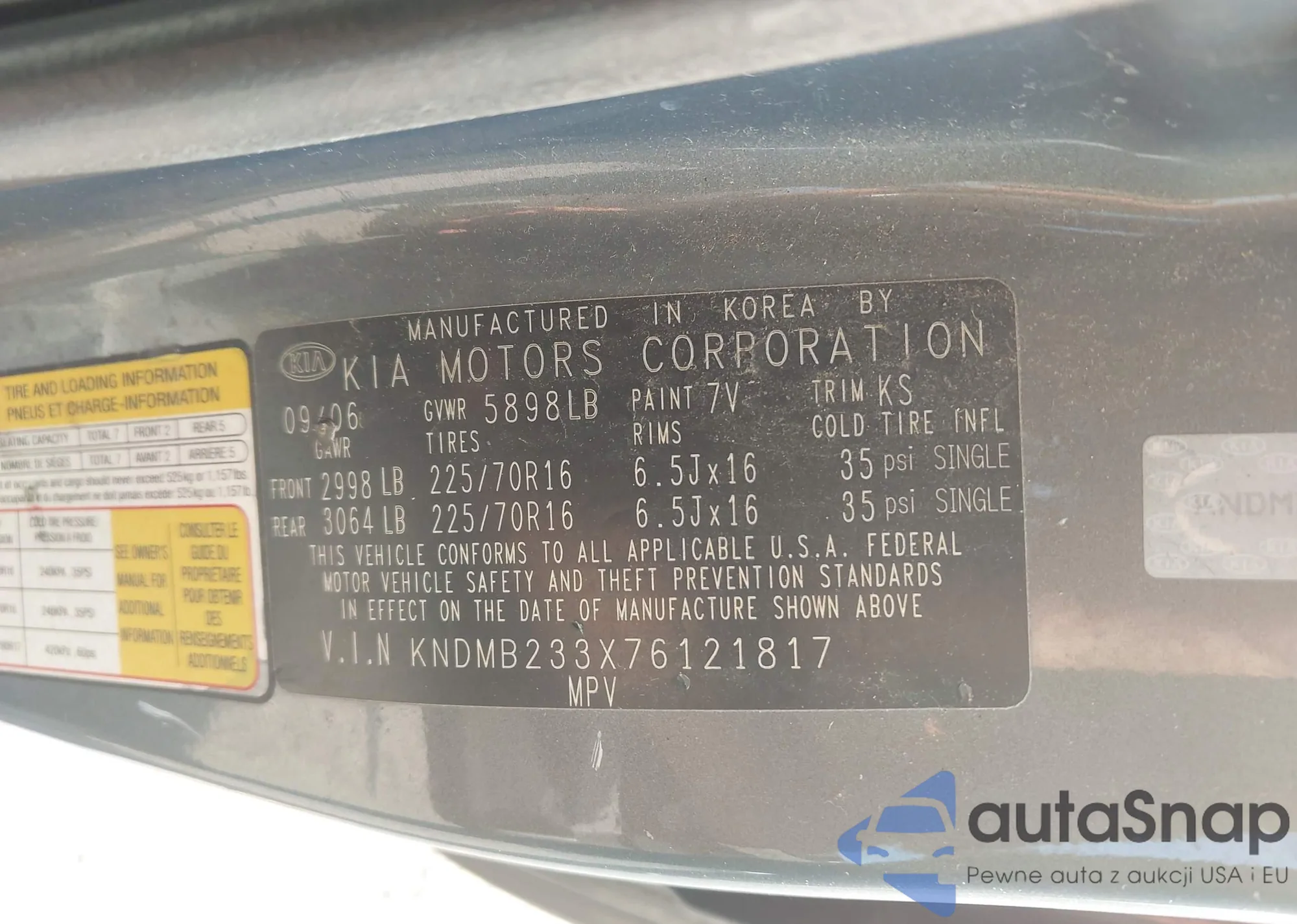 VIN: KNDMB233X76121817