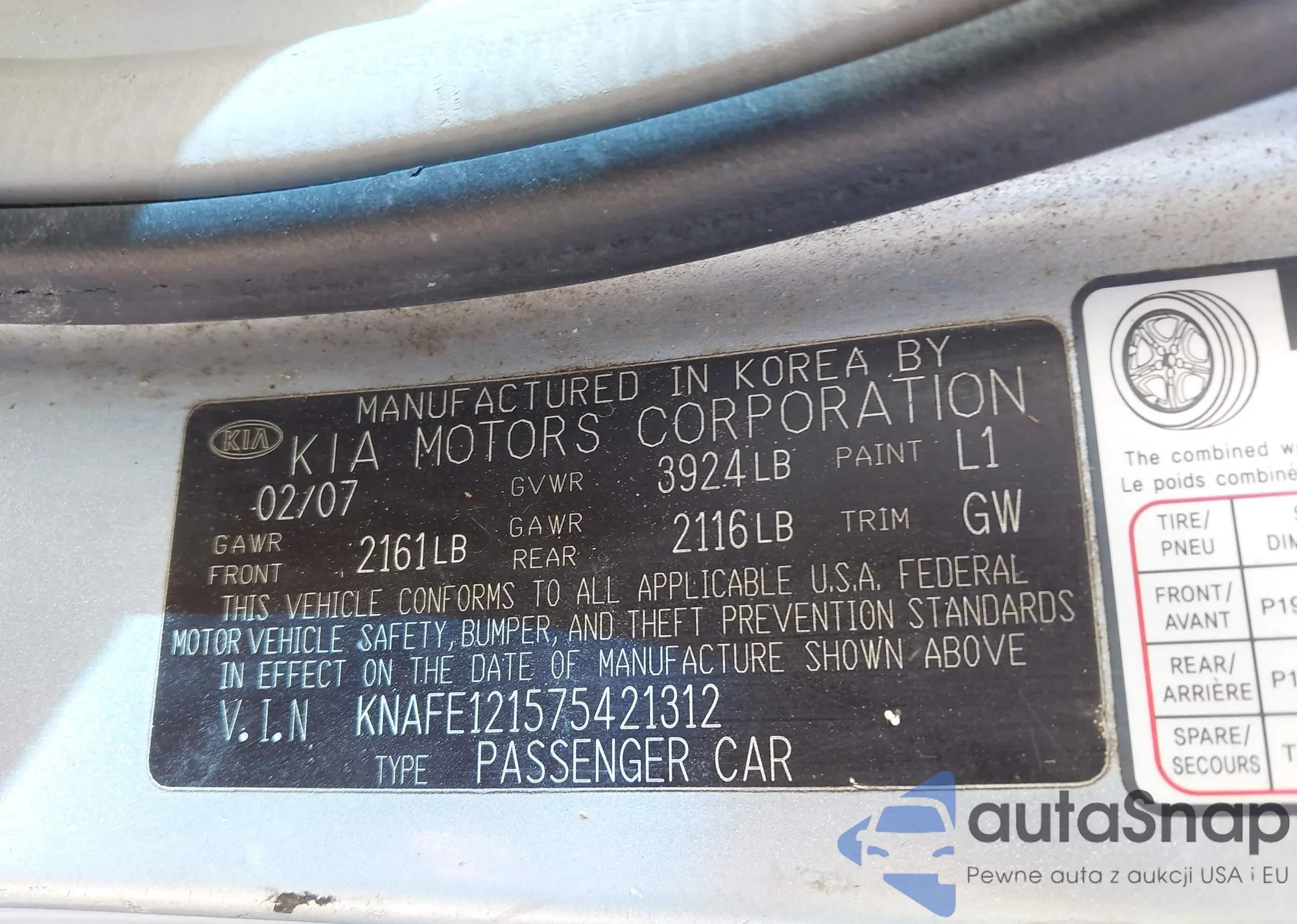 VIN: KNAFE121575421312