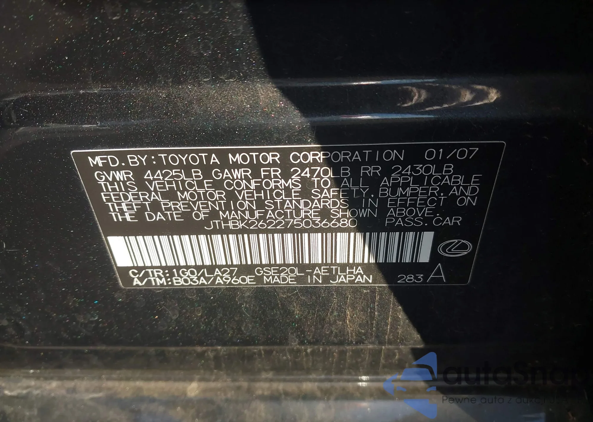 Lexus IS 2007 – Historia pojazdu (sprzedany na IAAI)