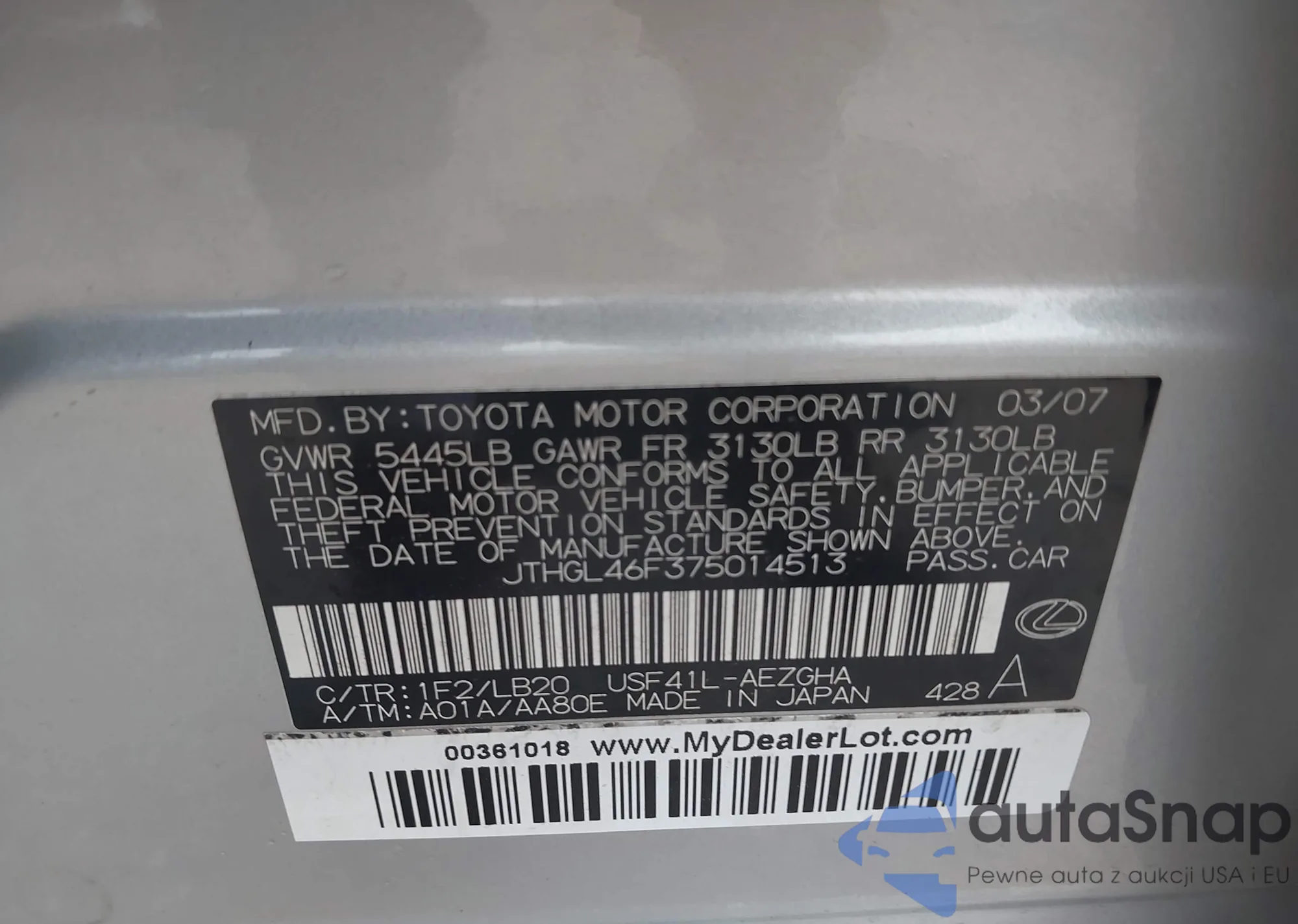 VIN: JTHGL46F375014513