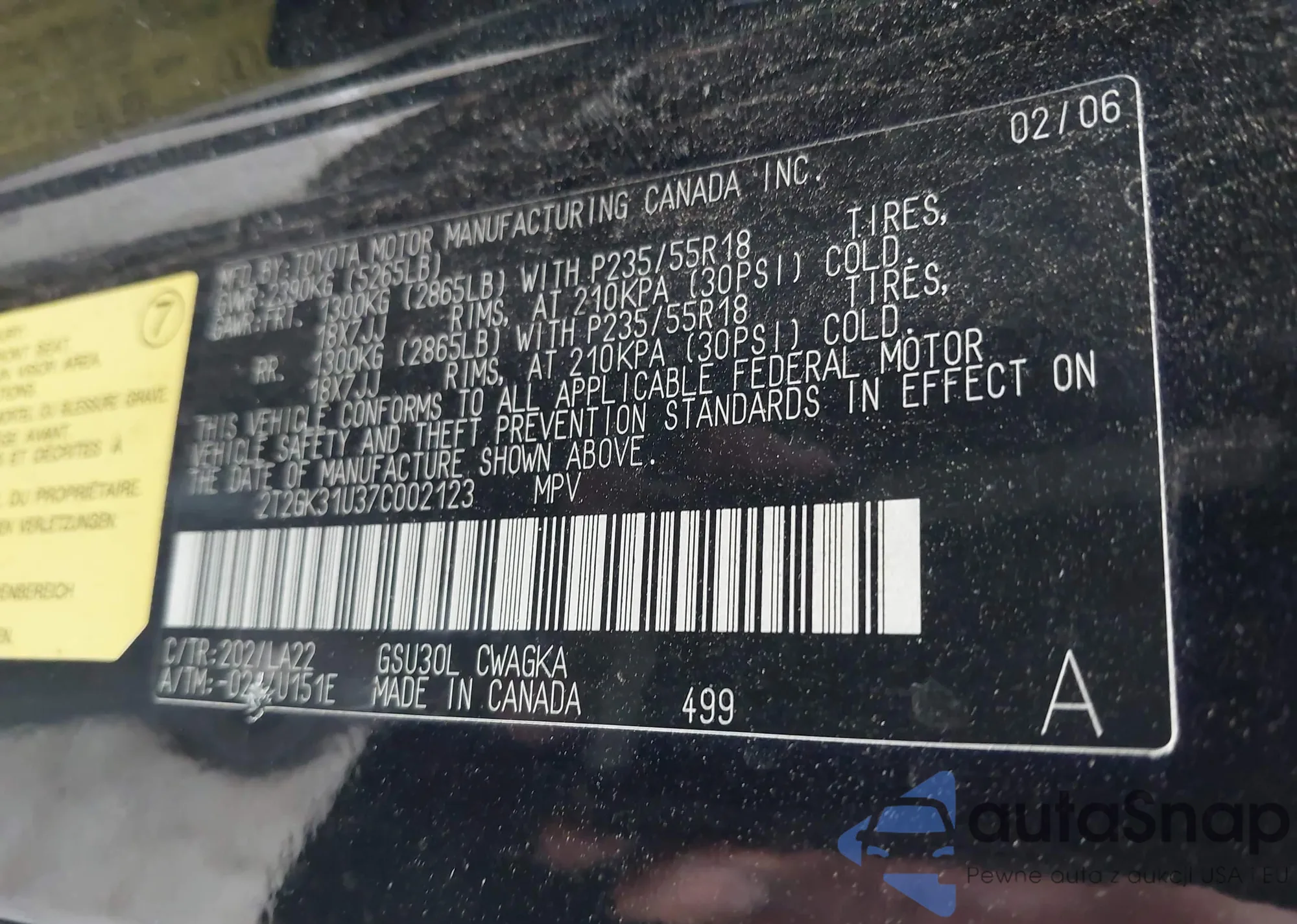 VIN: 2T2GK31U37C002123