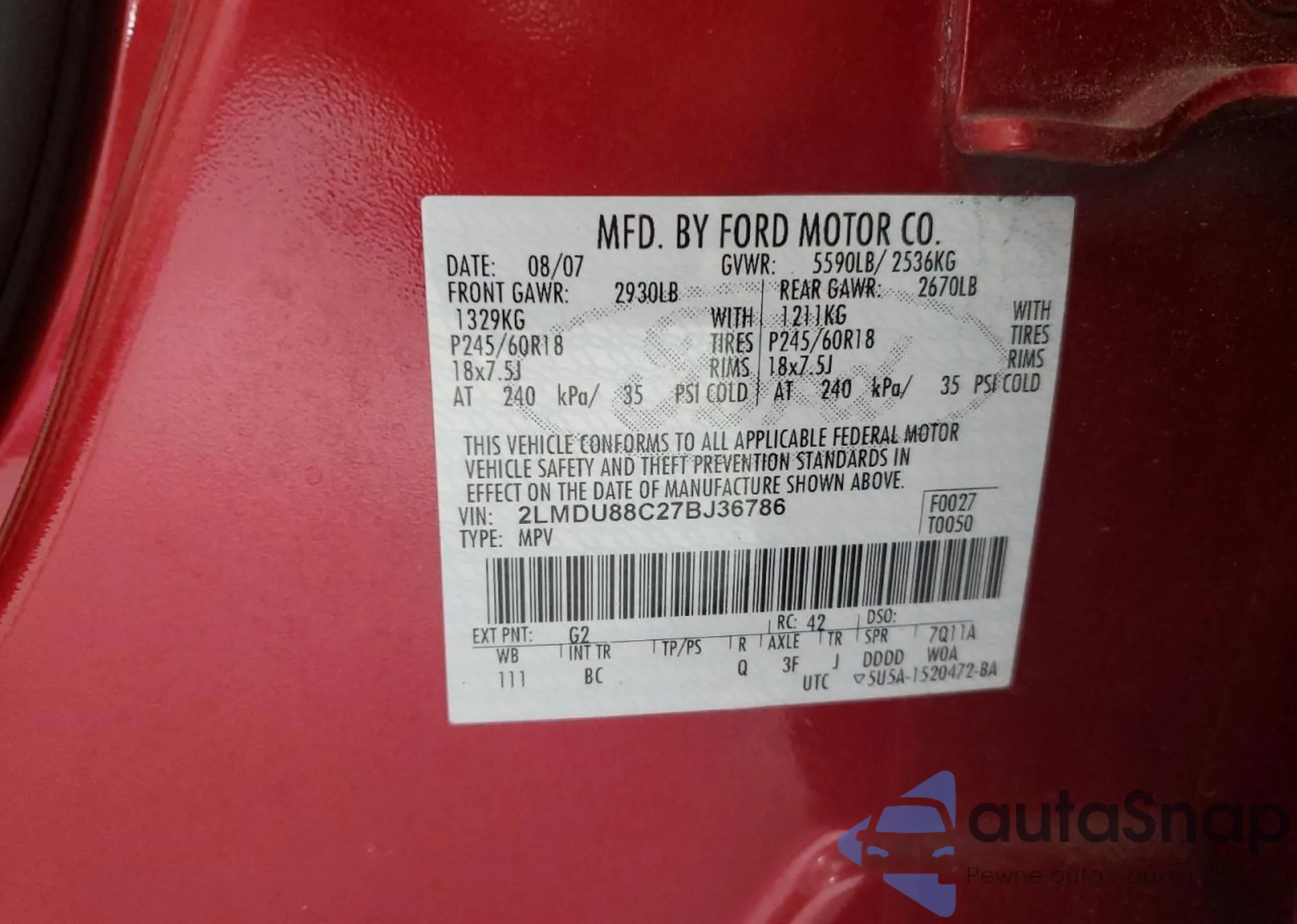 VIN: 2LMDU88C27BJ36786