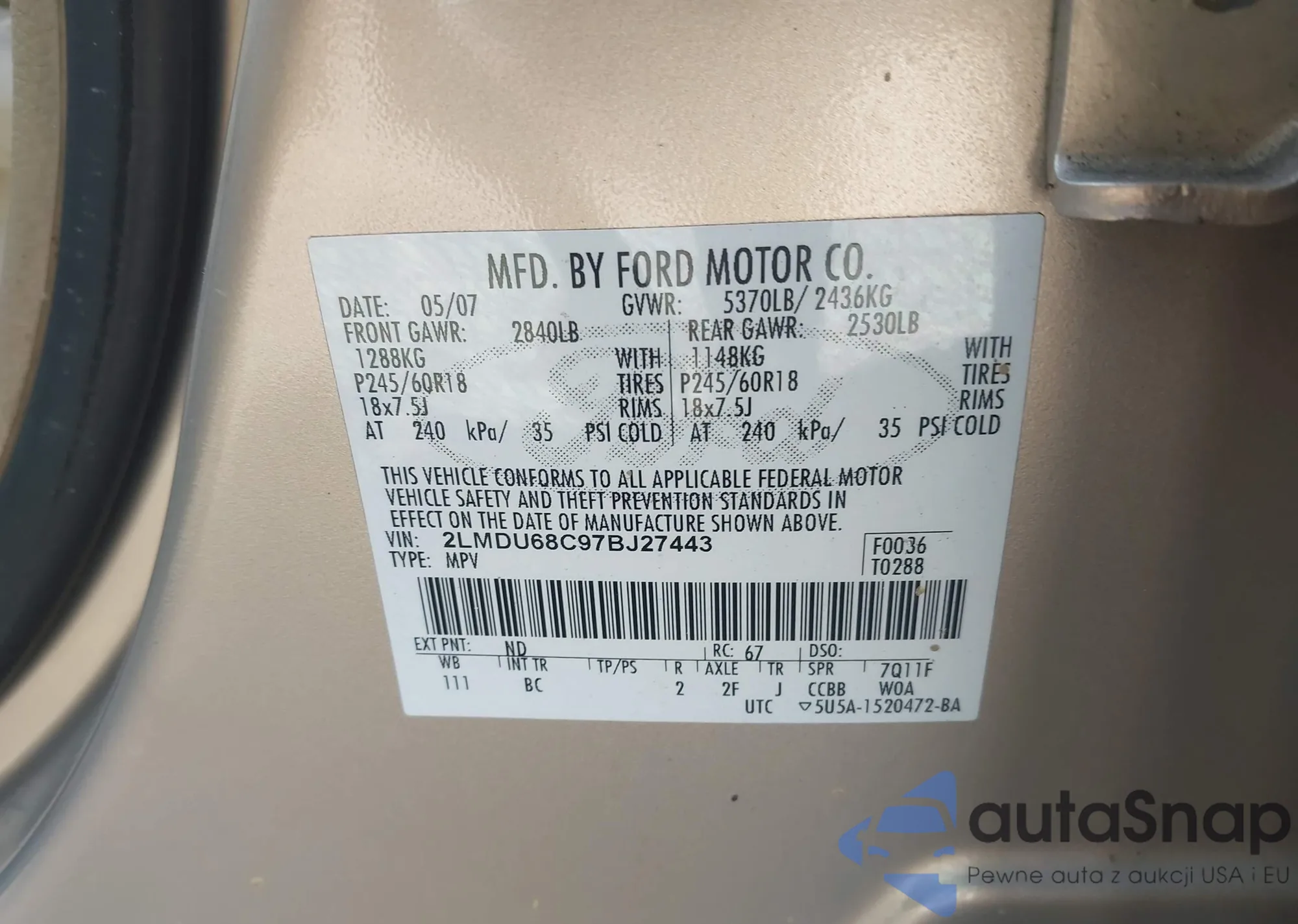 VIN: 2LMDU68C97BJ27443