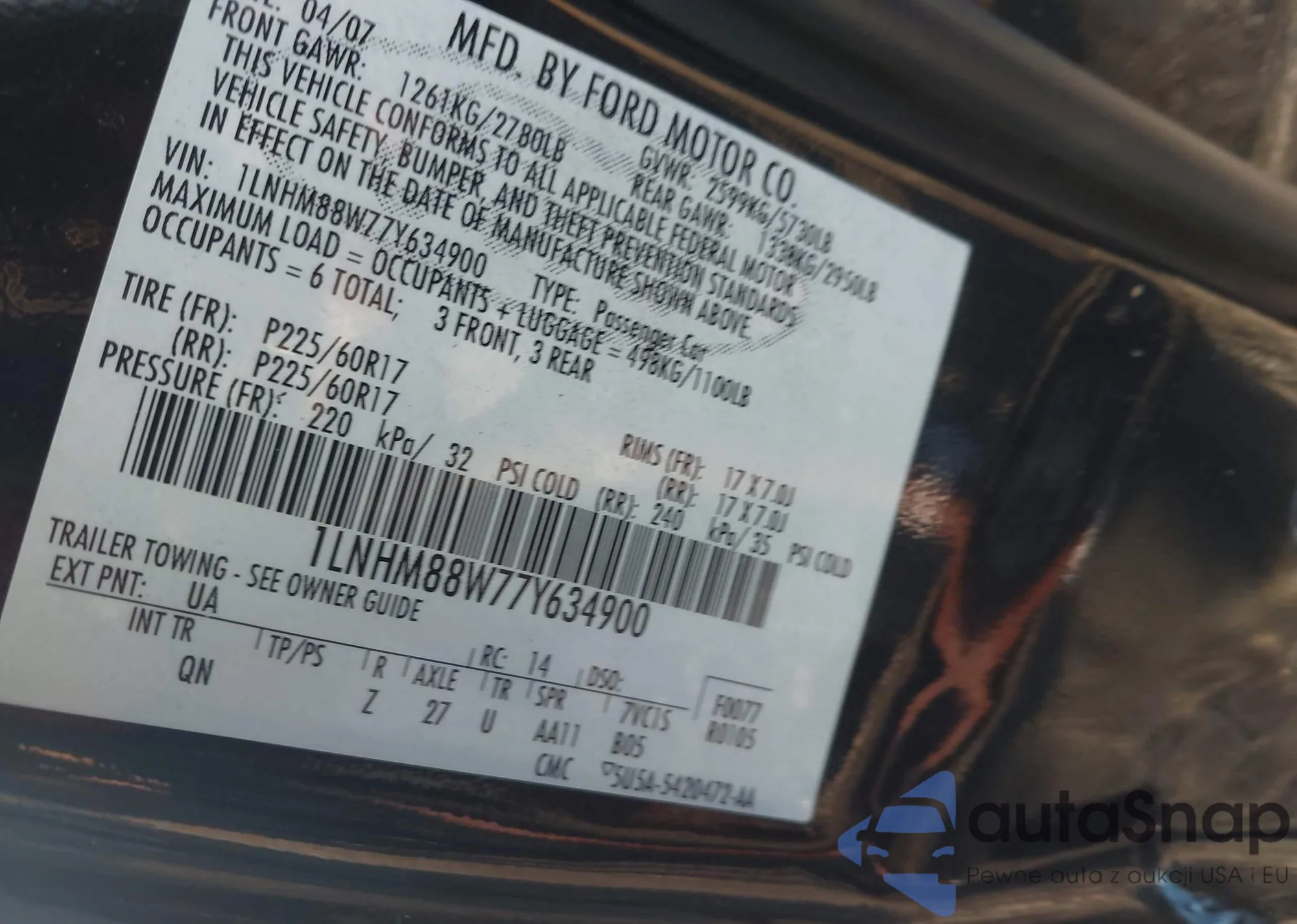 VIN: 1LNHM88W77Y634900