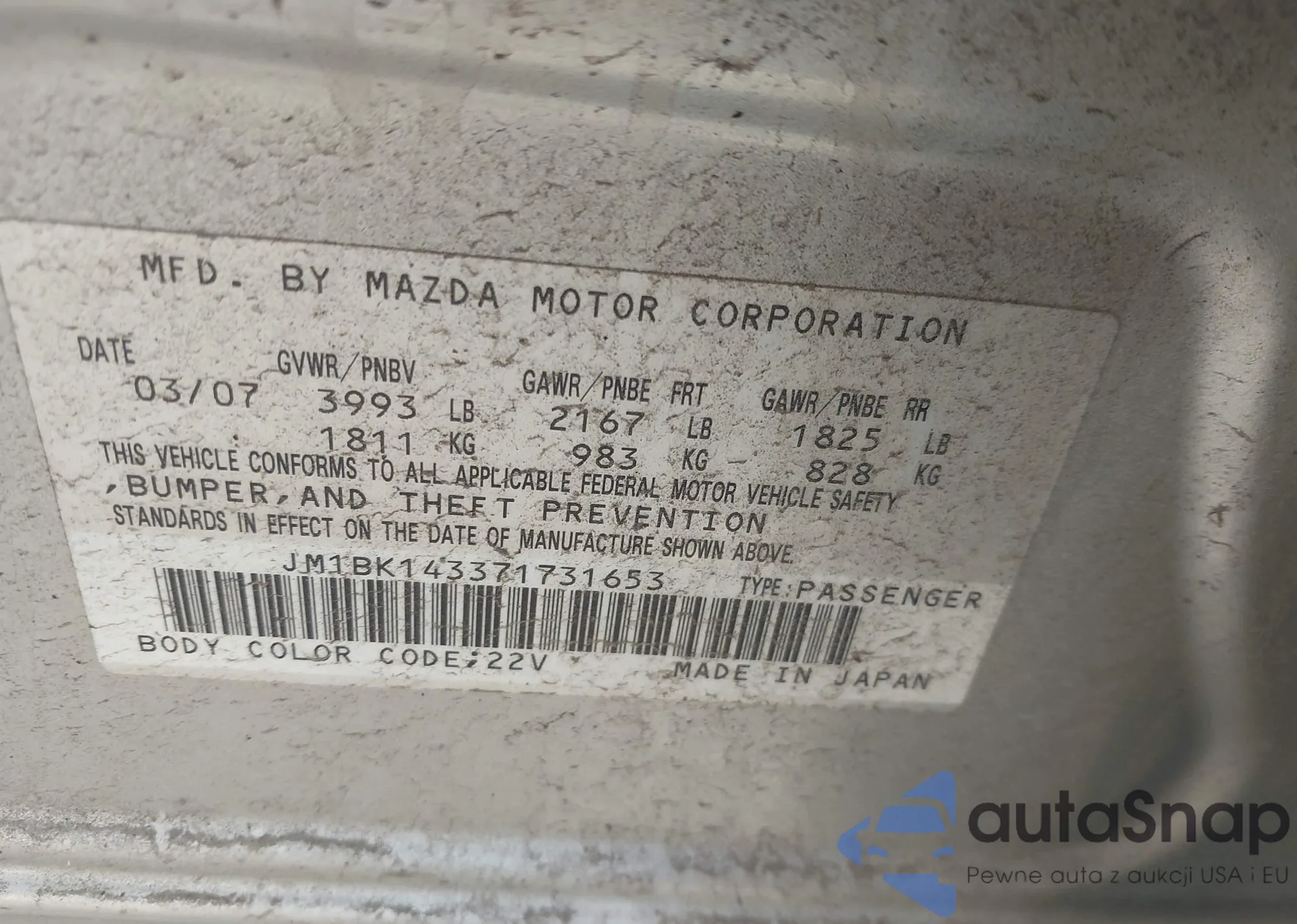 VIN: JM1BK143371731653