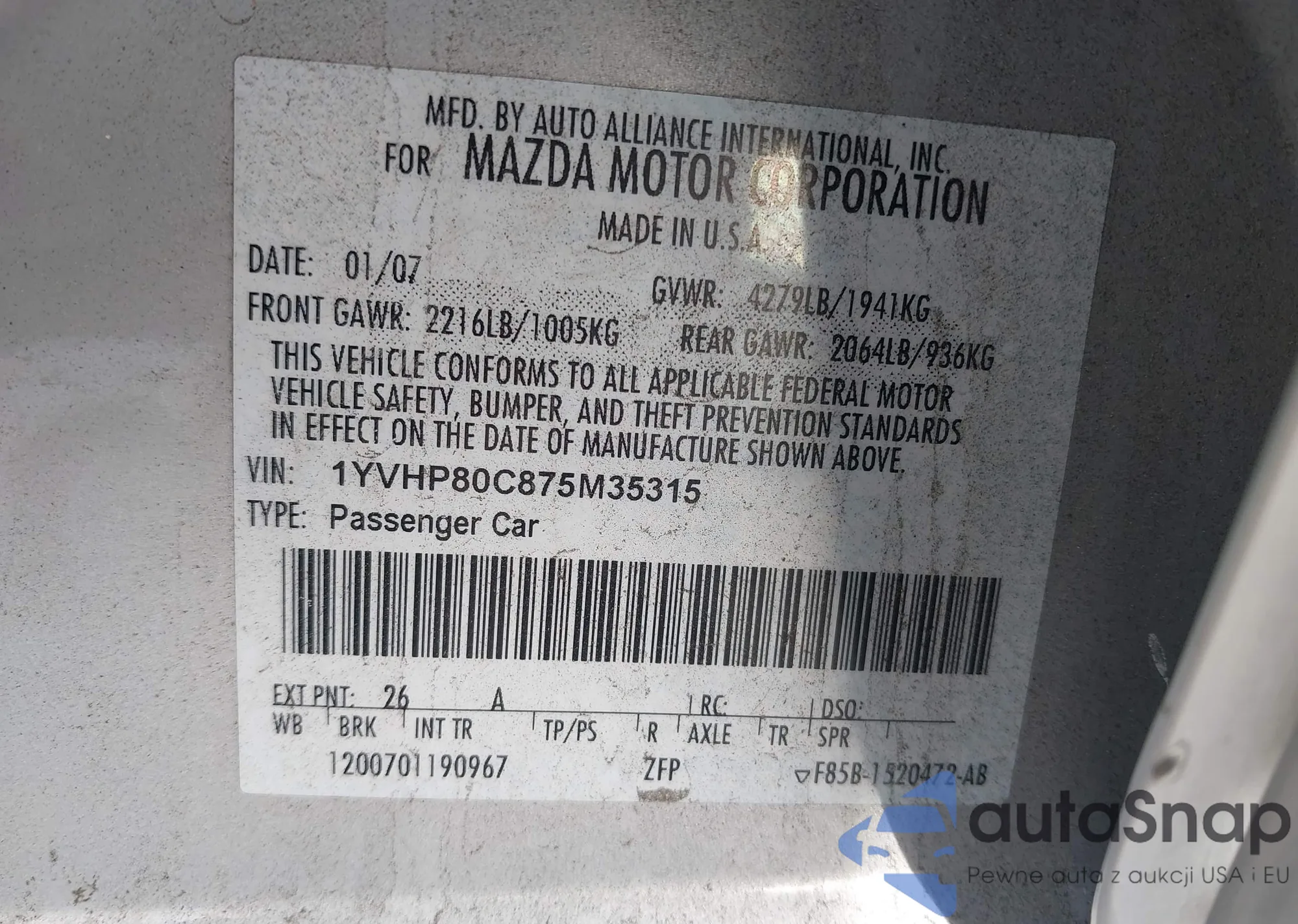 VIN: 1YVHP80C875M35315