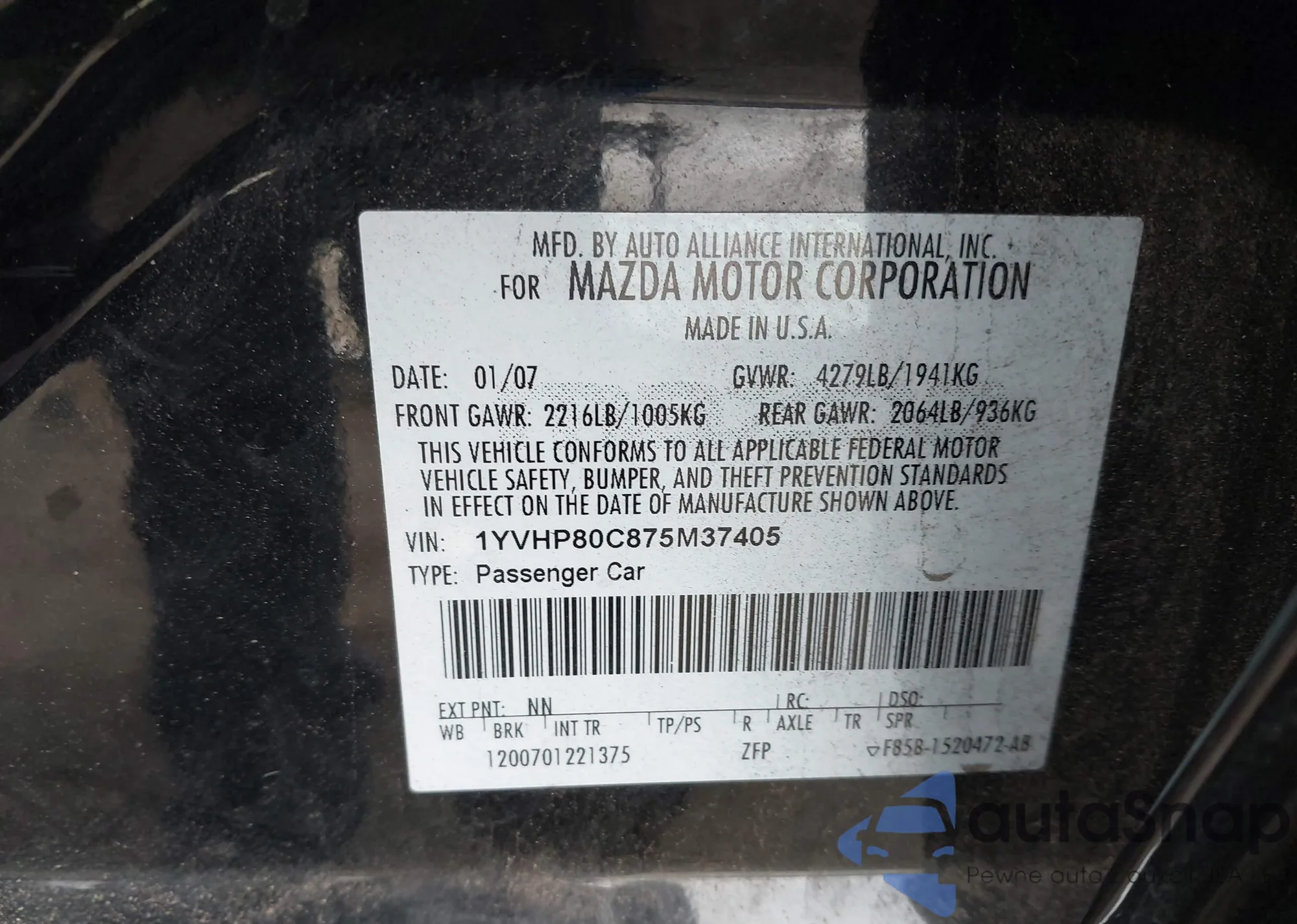 VIN: 1YVHP80C875M37405