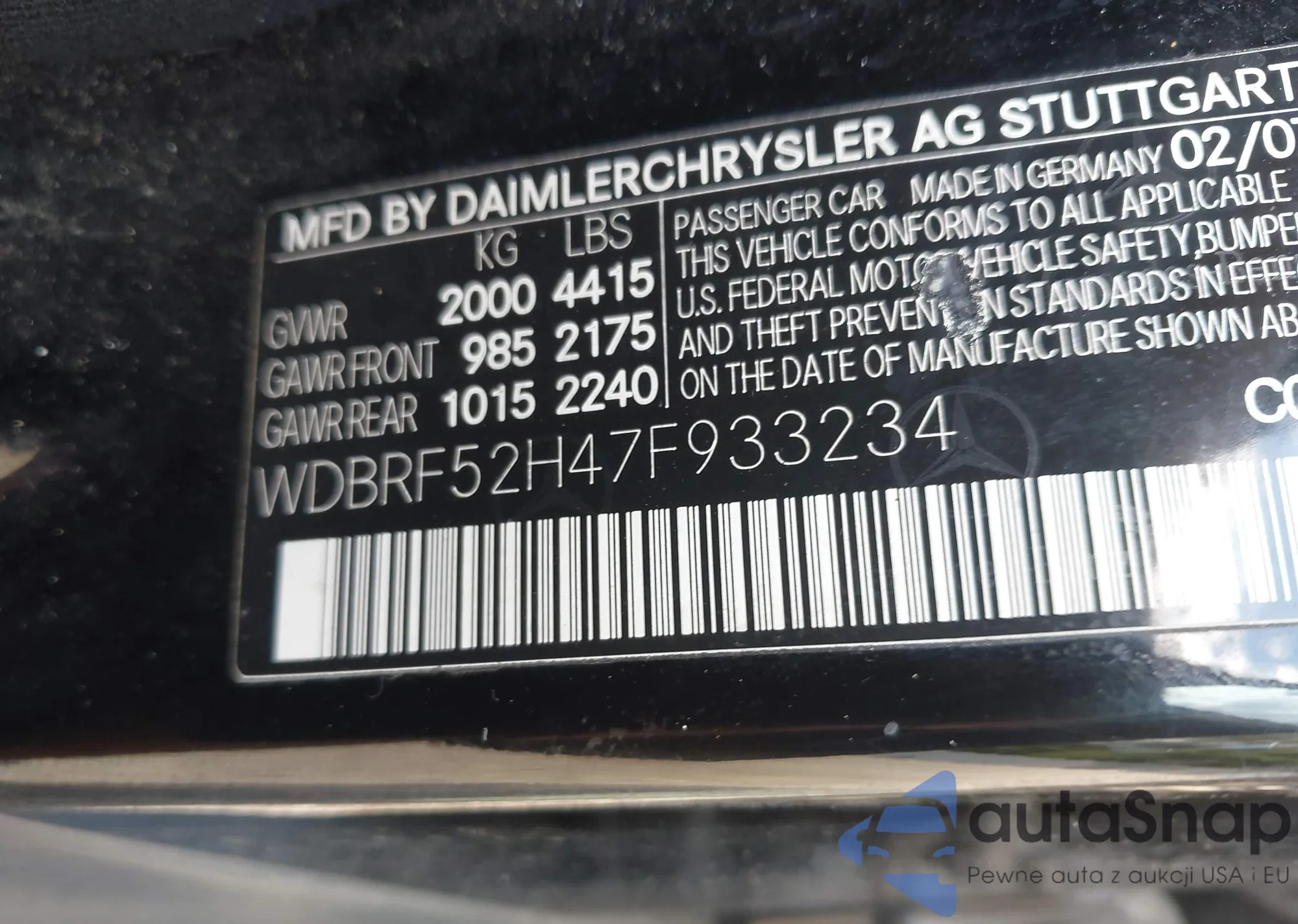 VIN: WDBRF52H47F933234
