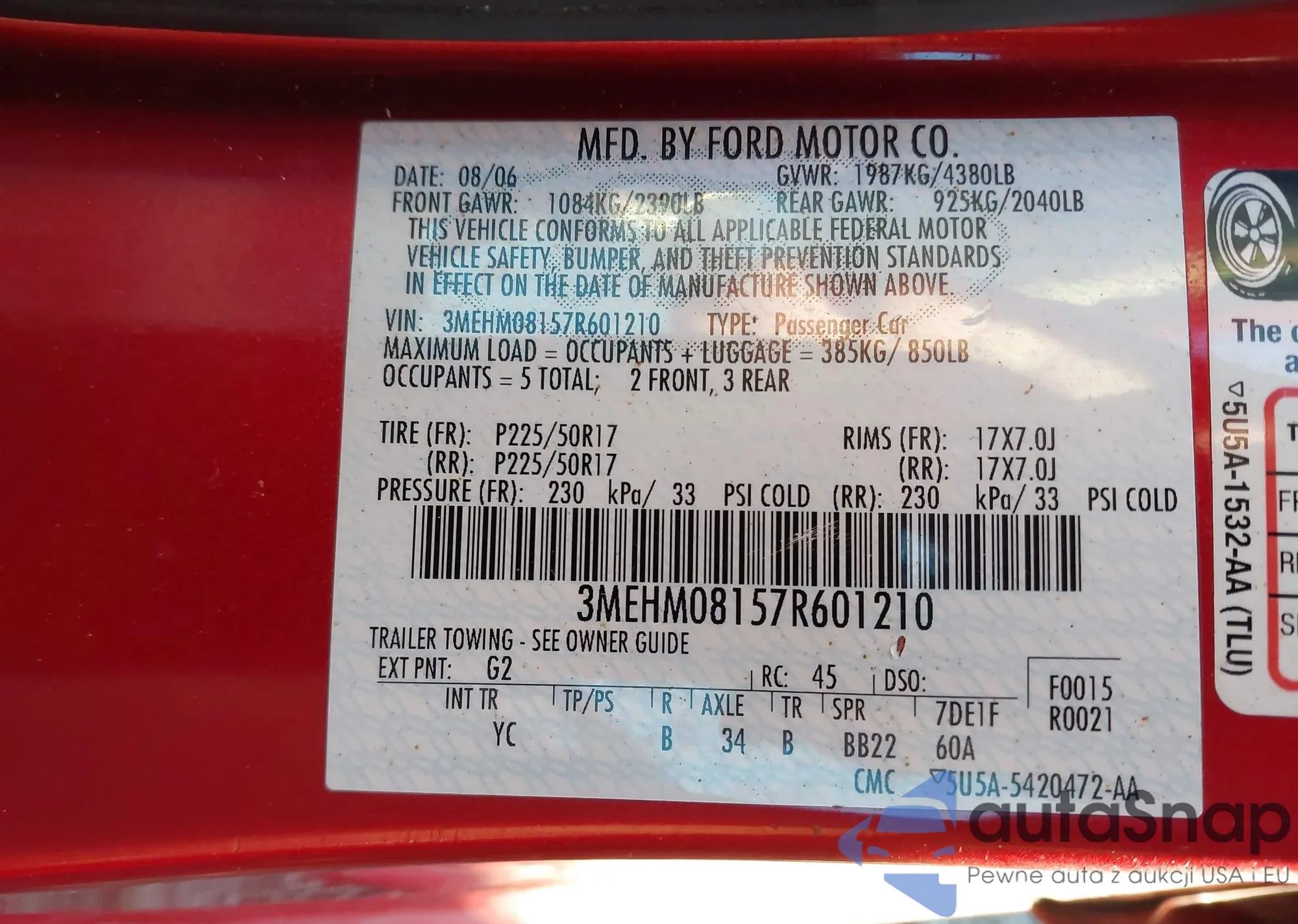 Marka: 2007 Mercury Milan V6...