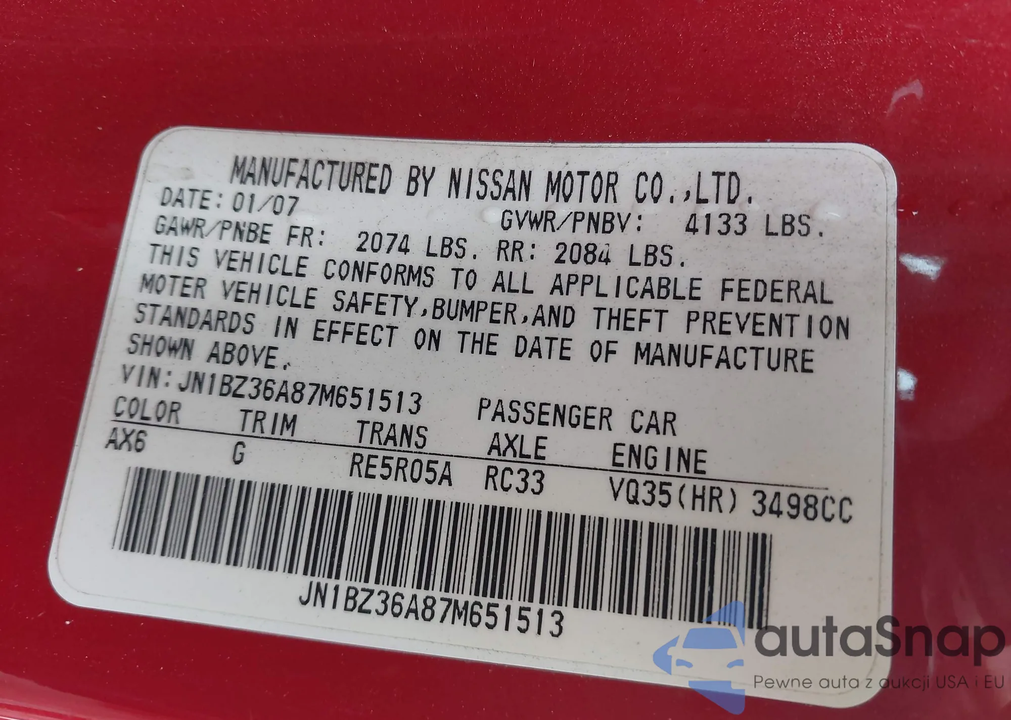 VIN: JN1BZ36A87M651513