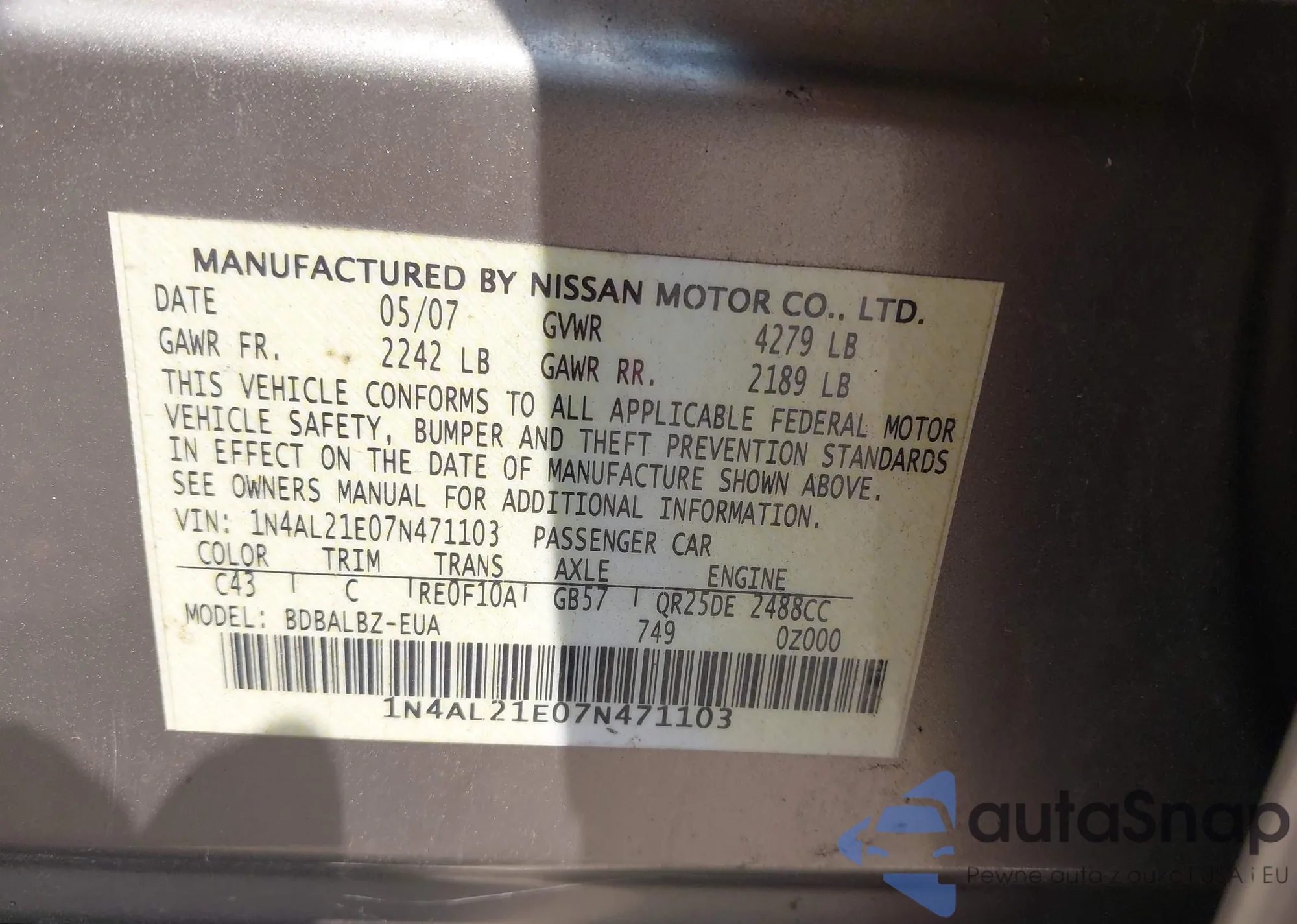 VIN: 1N4AL21E07N471103