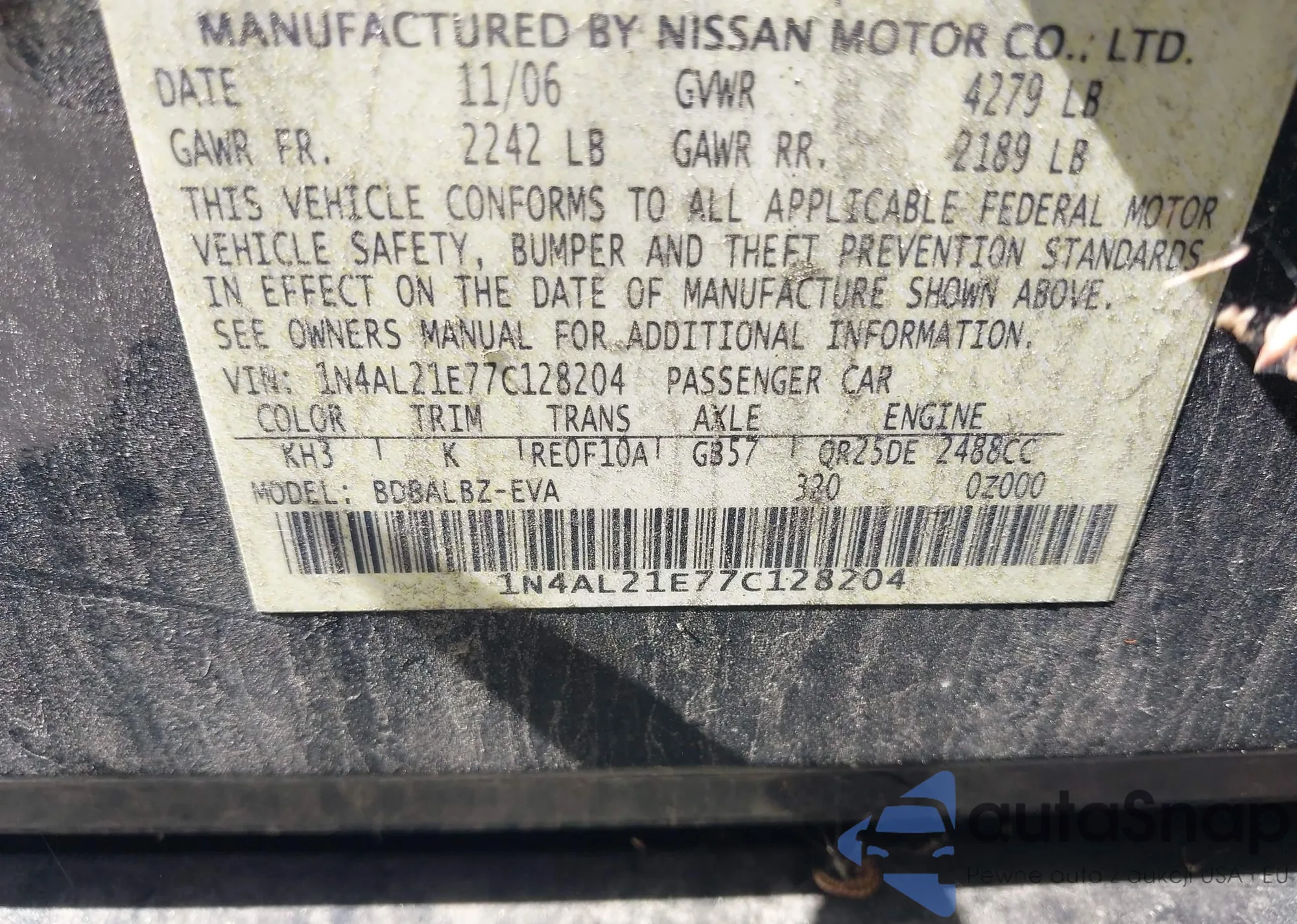 VIN: 1N4AL21E77C128204