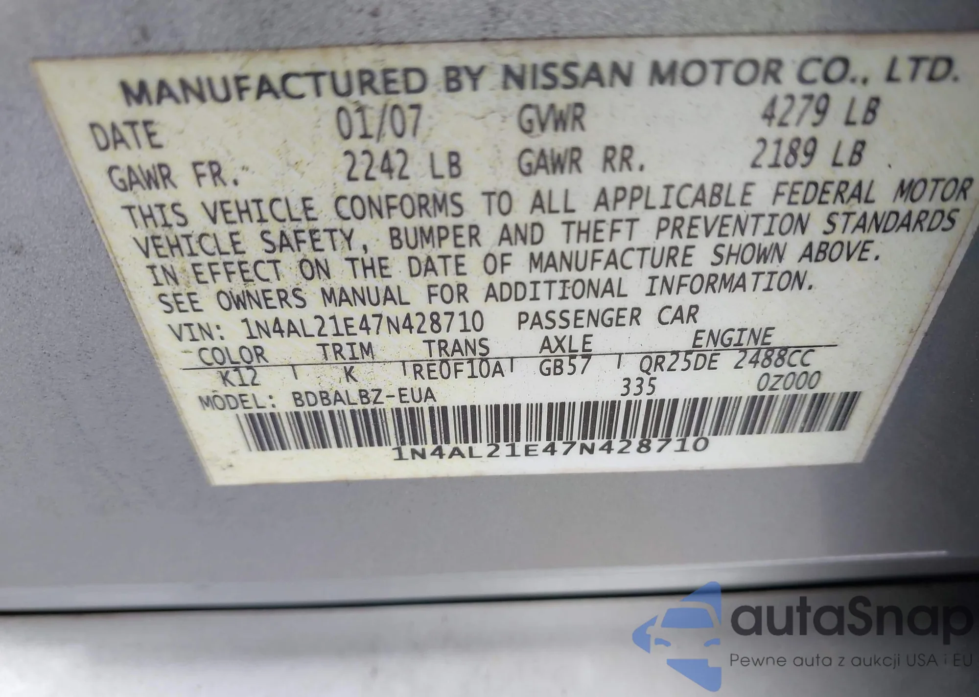 • VIN: 1N4AL21E47N428710