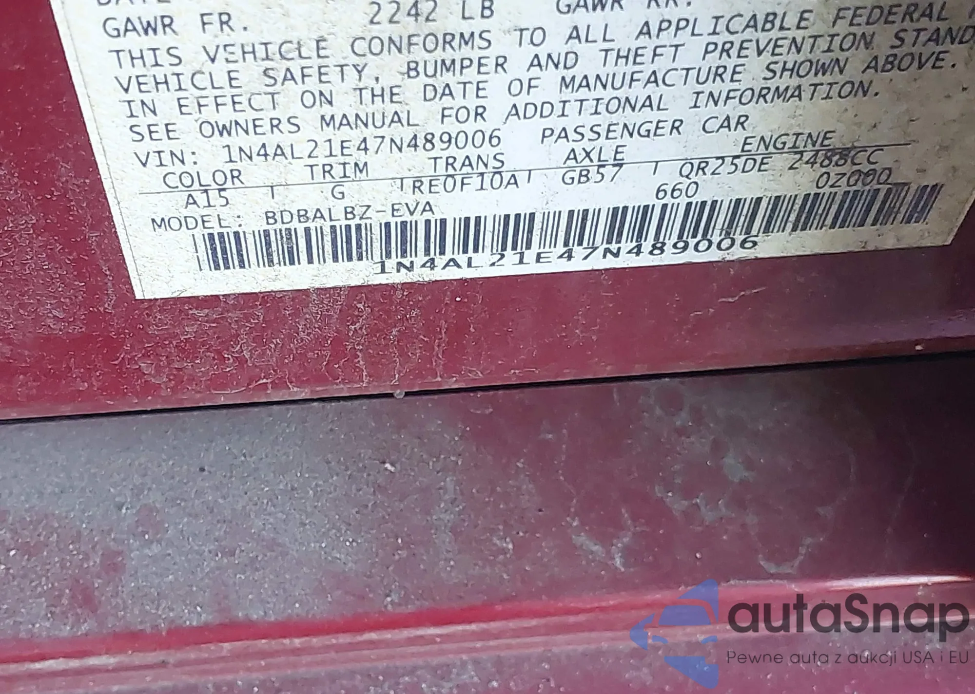 VIN: 1N4AL21E47N489006
