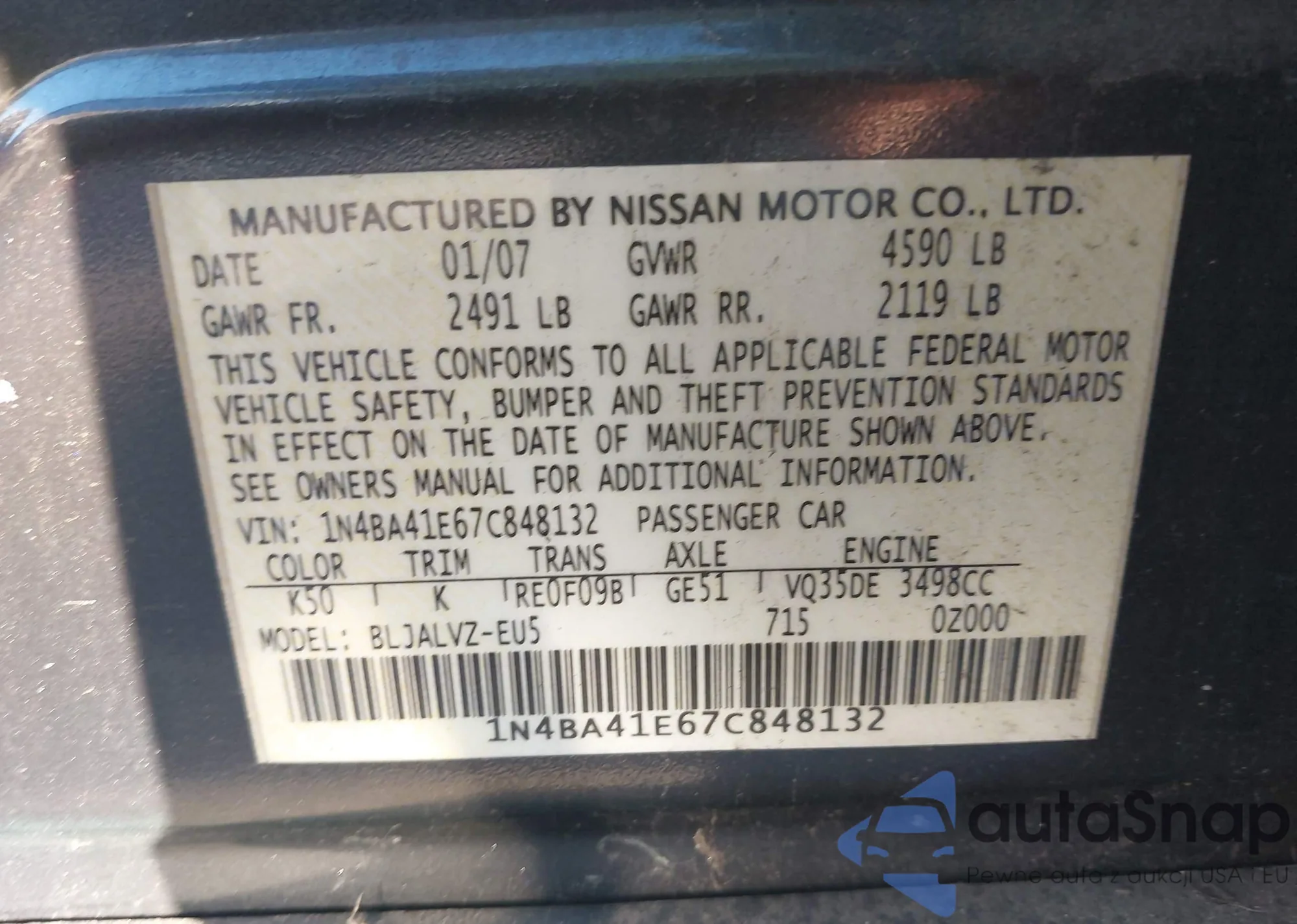 VIN: 1N4BA41E67C848132