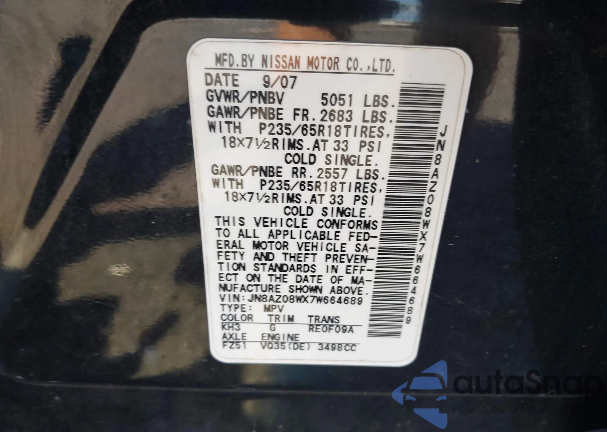 VIN: JN8AZ08WX7W664689