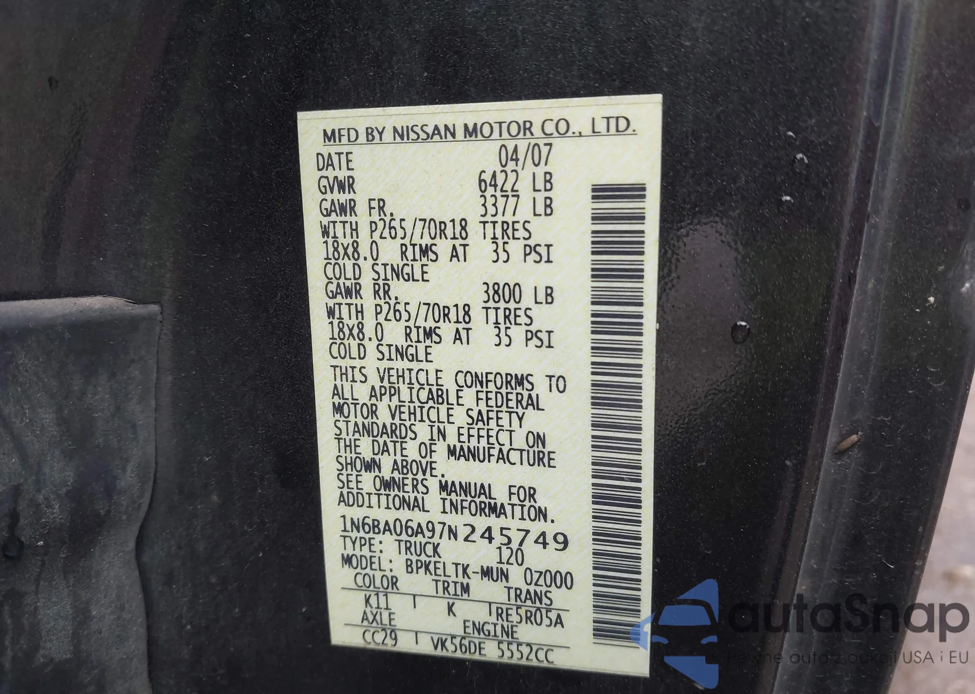 Marka: 2007 Nissan Titan Se
