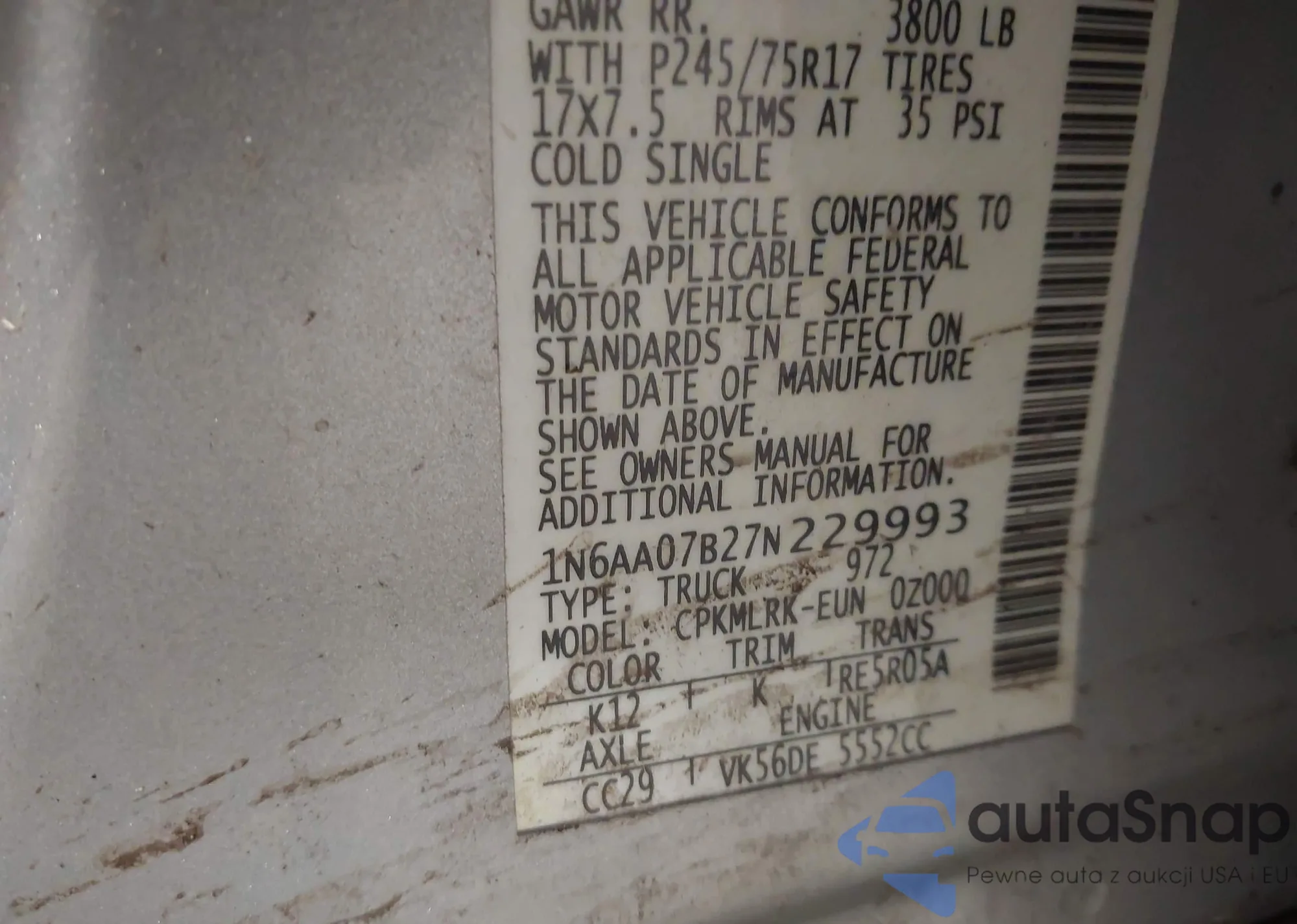 VIN: 1N6AA07B27N229993