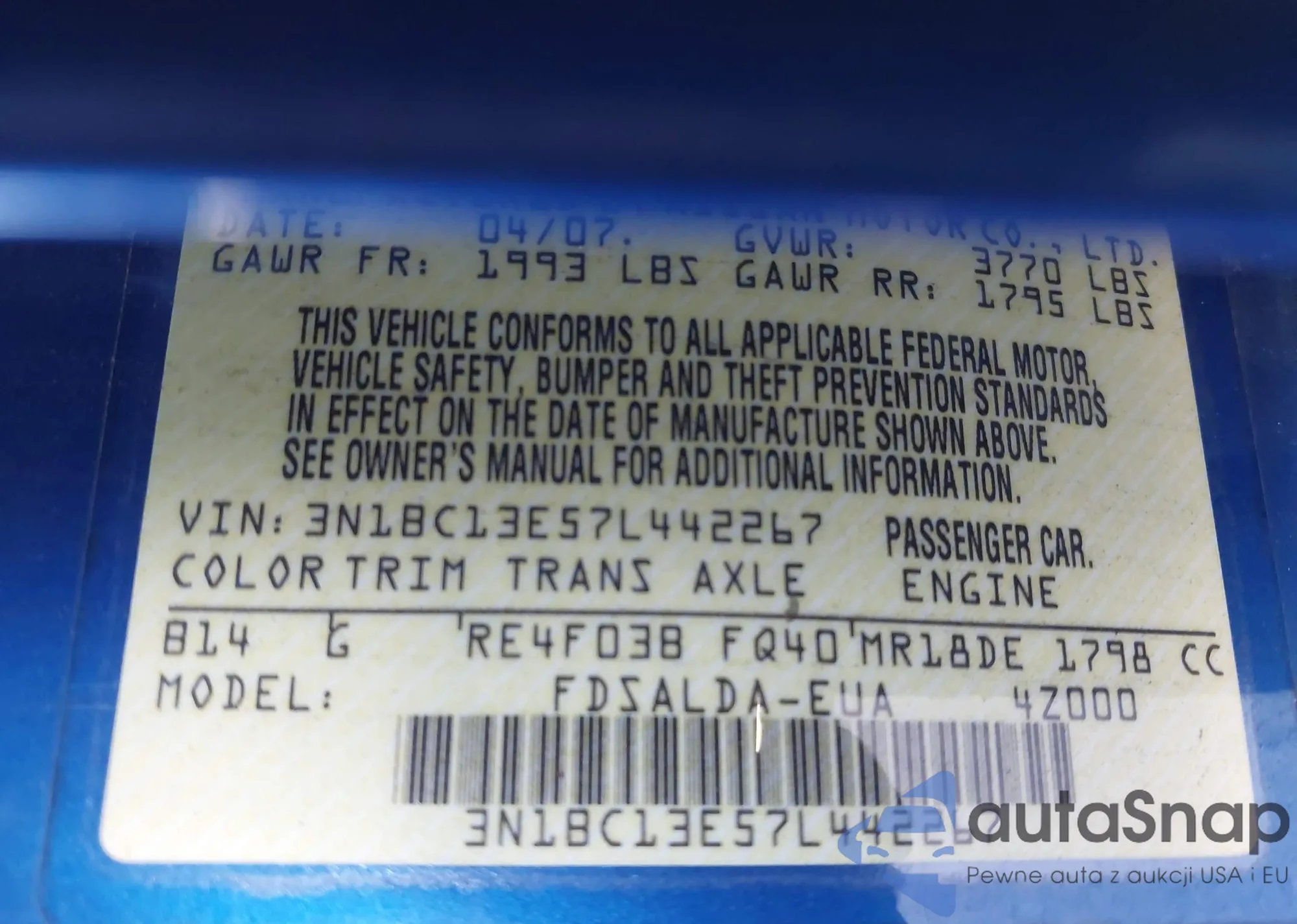 VIN: 3N1BC13E57L442267
