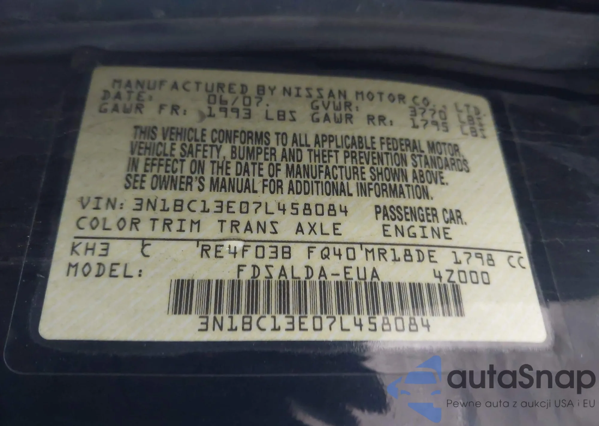 VIN: 3N1BC13E07L458084