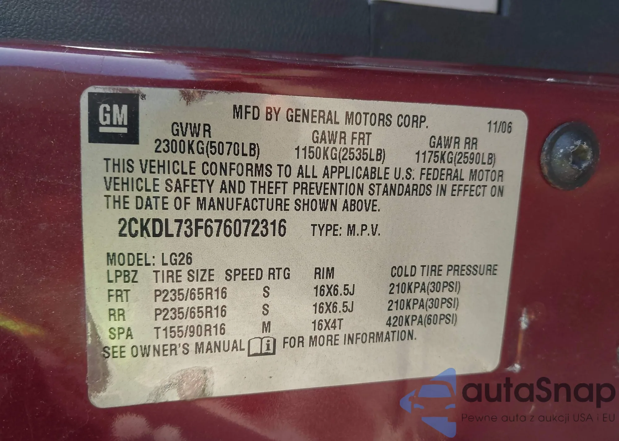 VIN: 2CKDL73F676072316