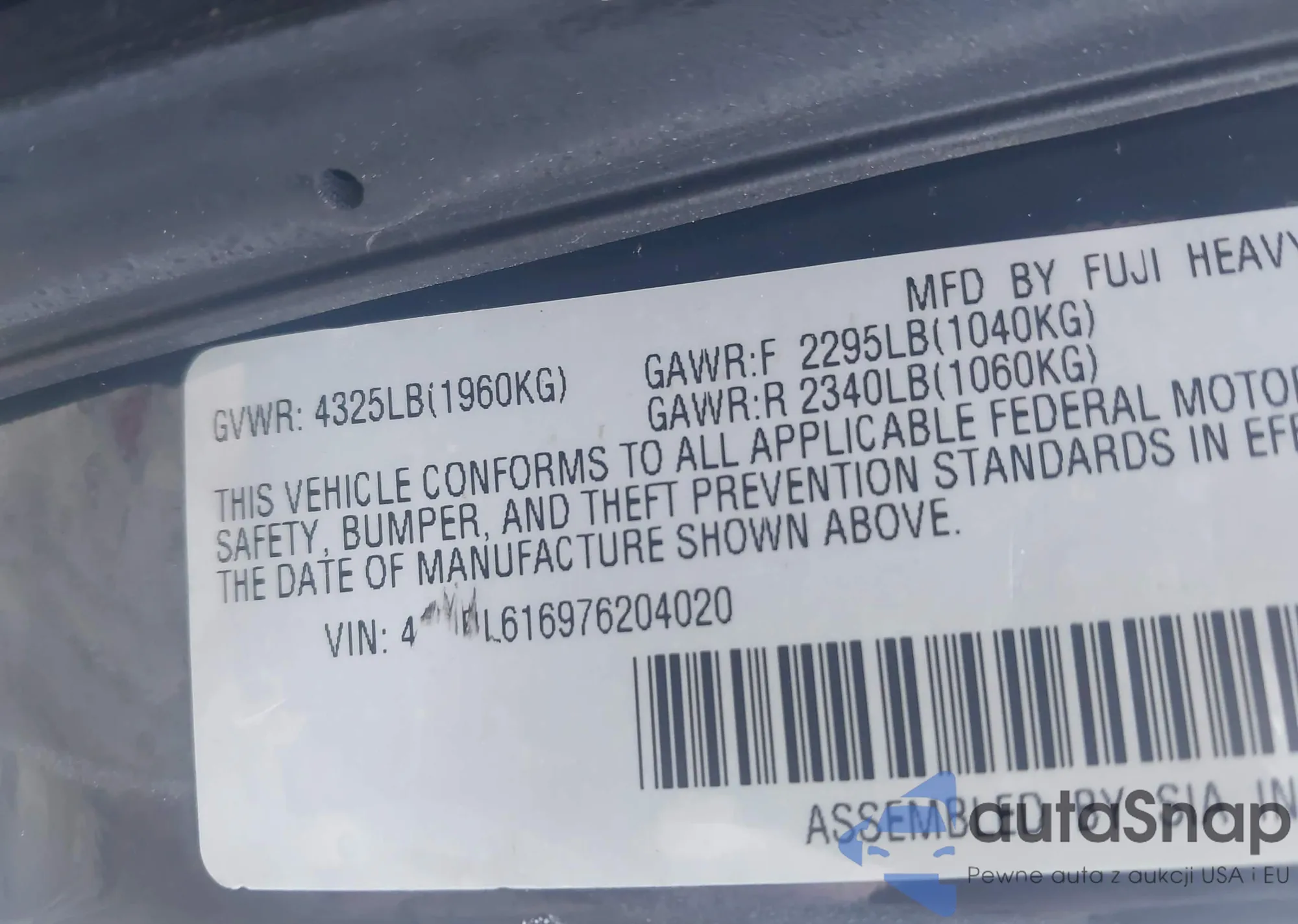 VIN: 4S3BL616976204020