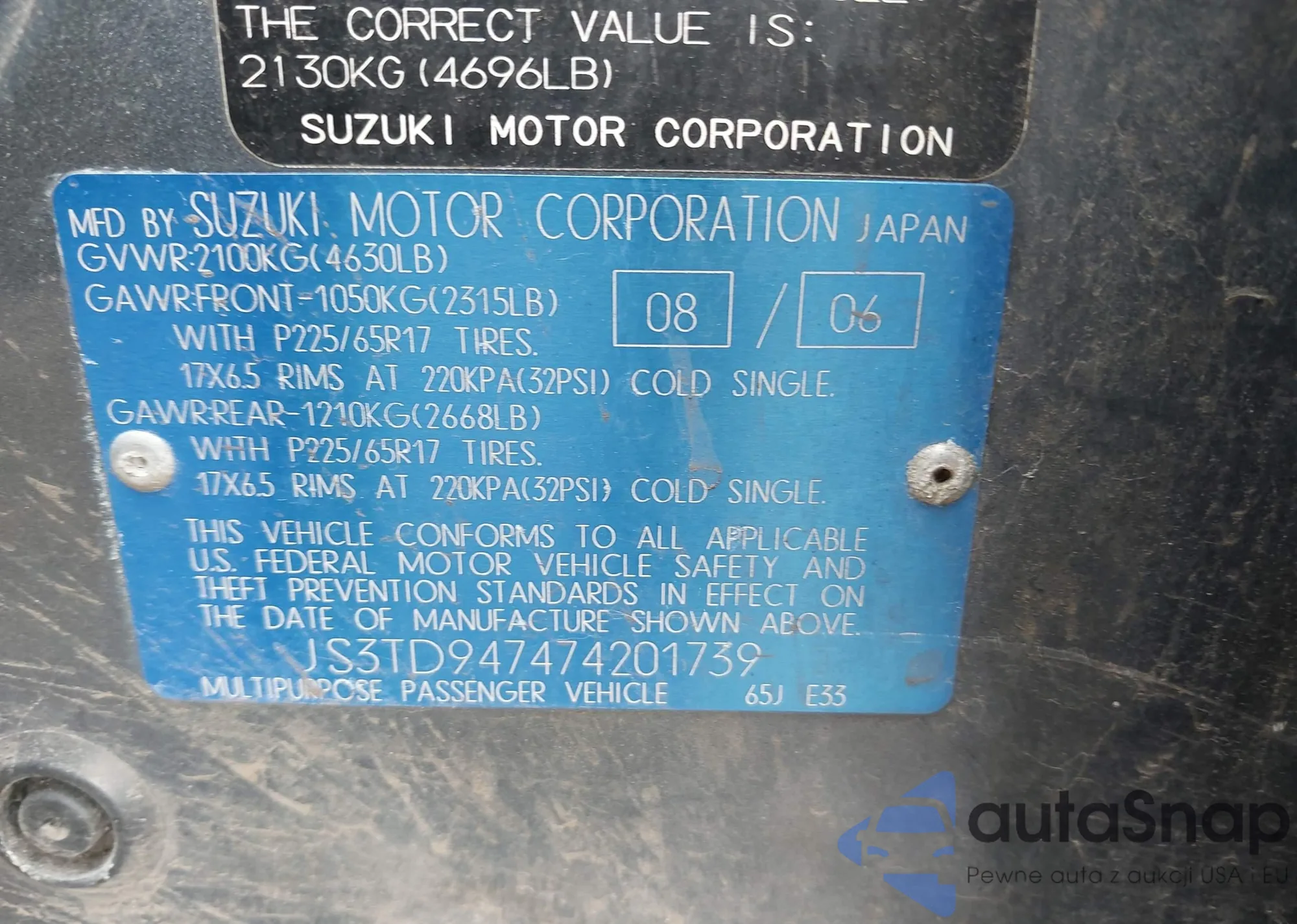 VIN: JS3TD947474201739