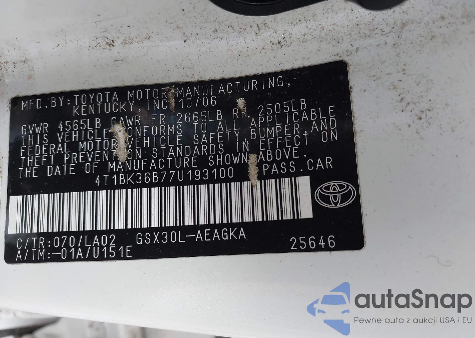 VIN: 4T1BK36B77U193100