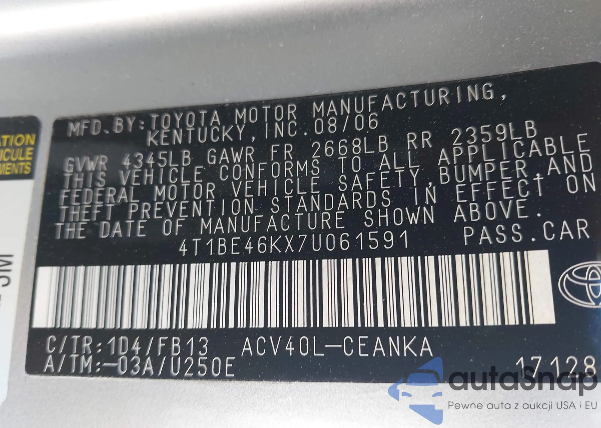 VIN: 4T1BE46KX7U061591