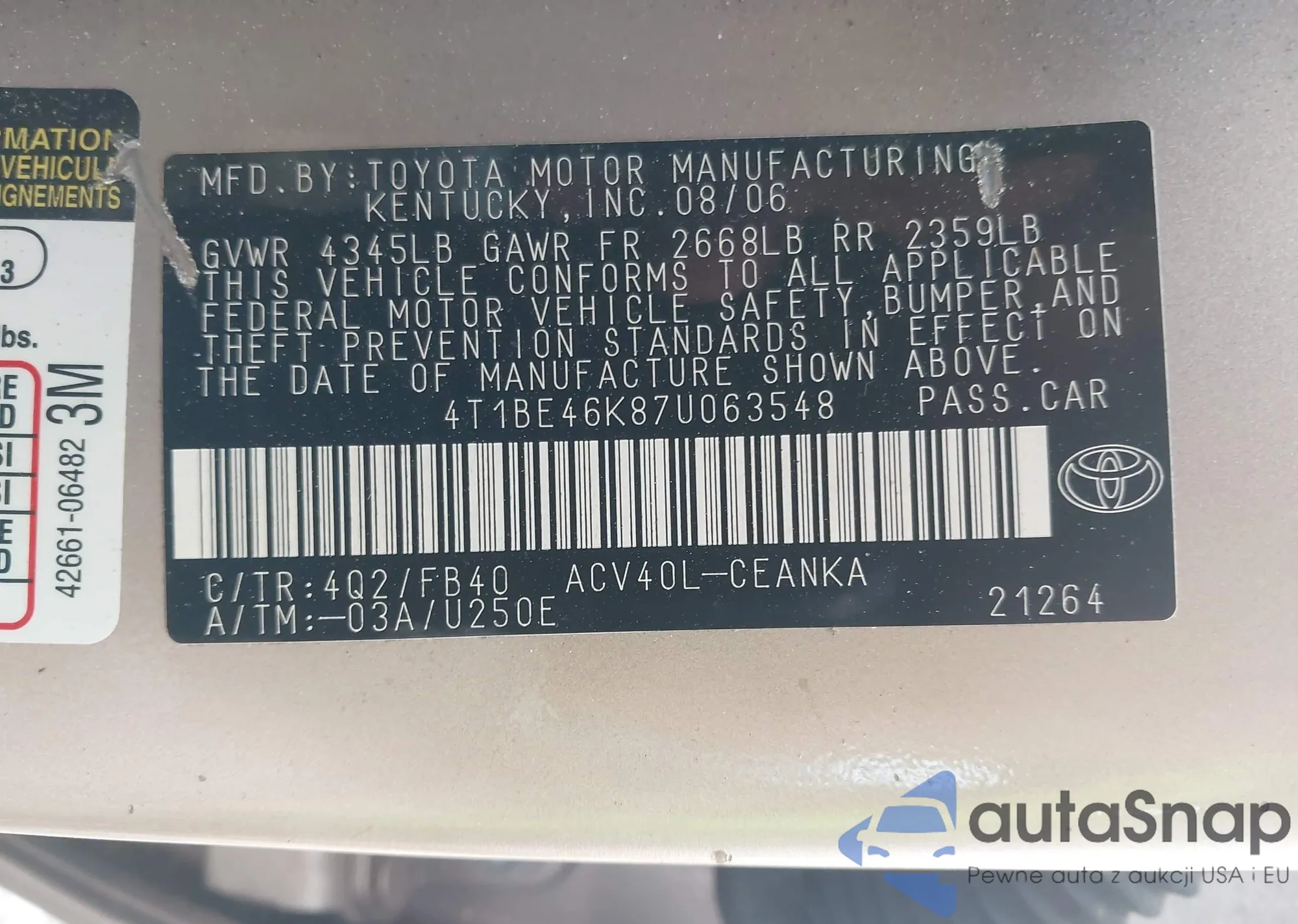 Toyota Camry 2007 – Historia pojazdu (sprzedany na IAAI)