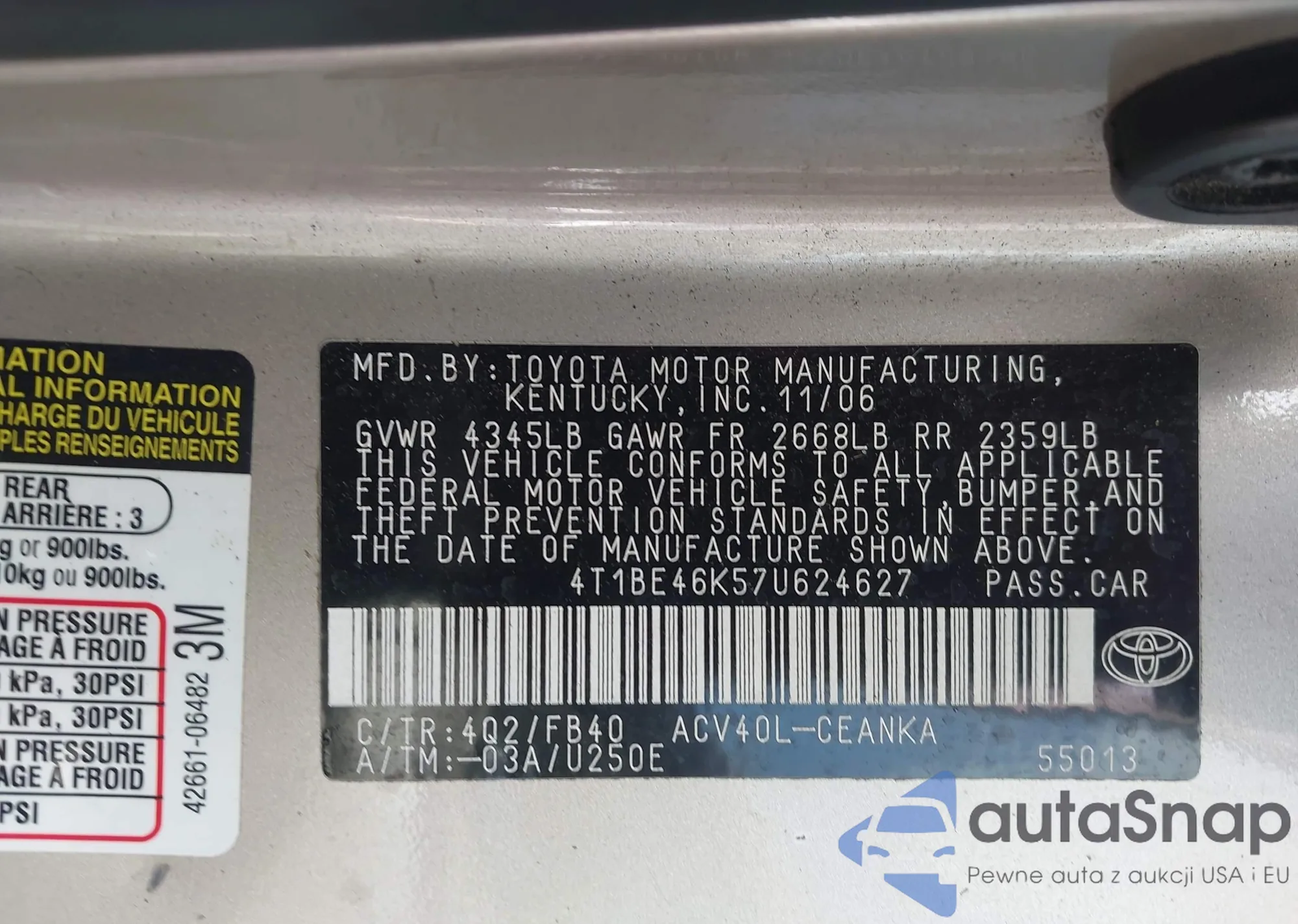 VIN: 4T1BE46K57U624627