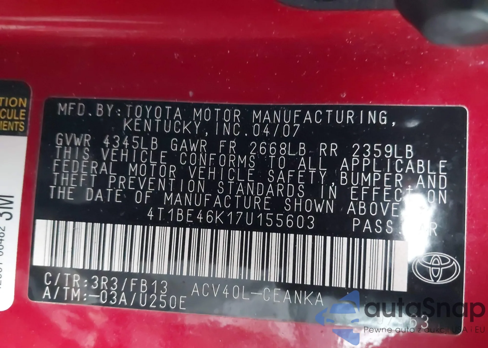 VIN: 4T1BE46K17U155603