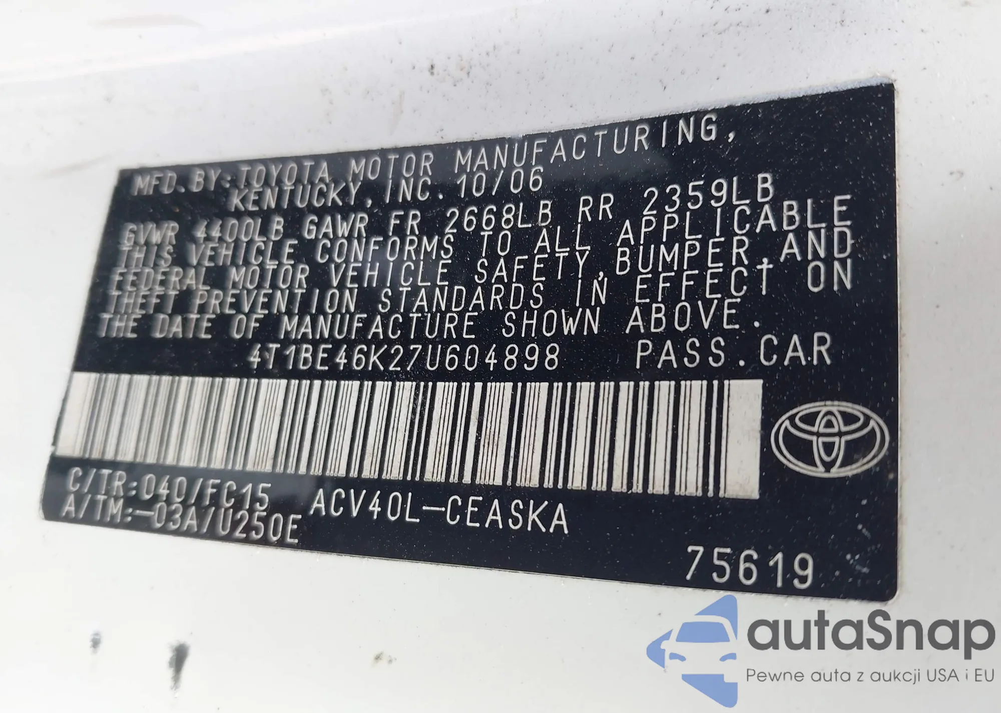 VIN: 4T1BE46K27U604898