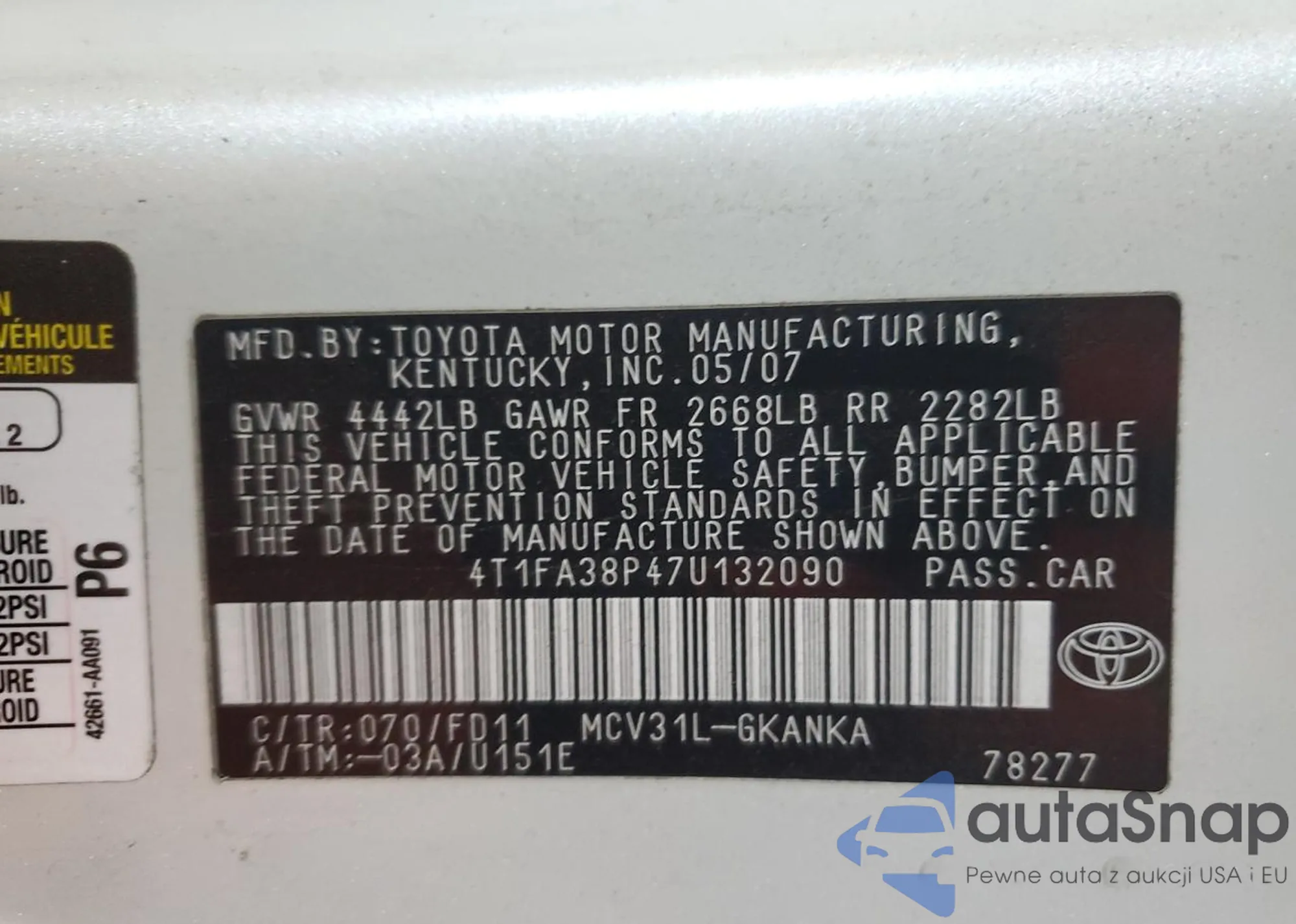 VIN: 4T1FA38P47U132090