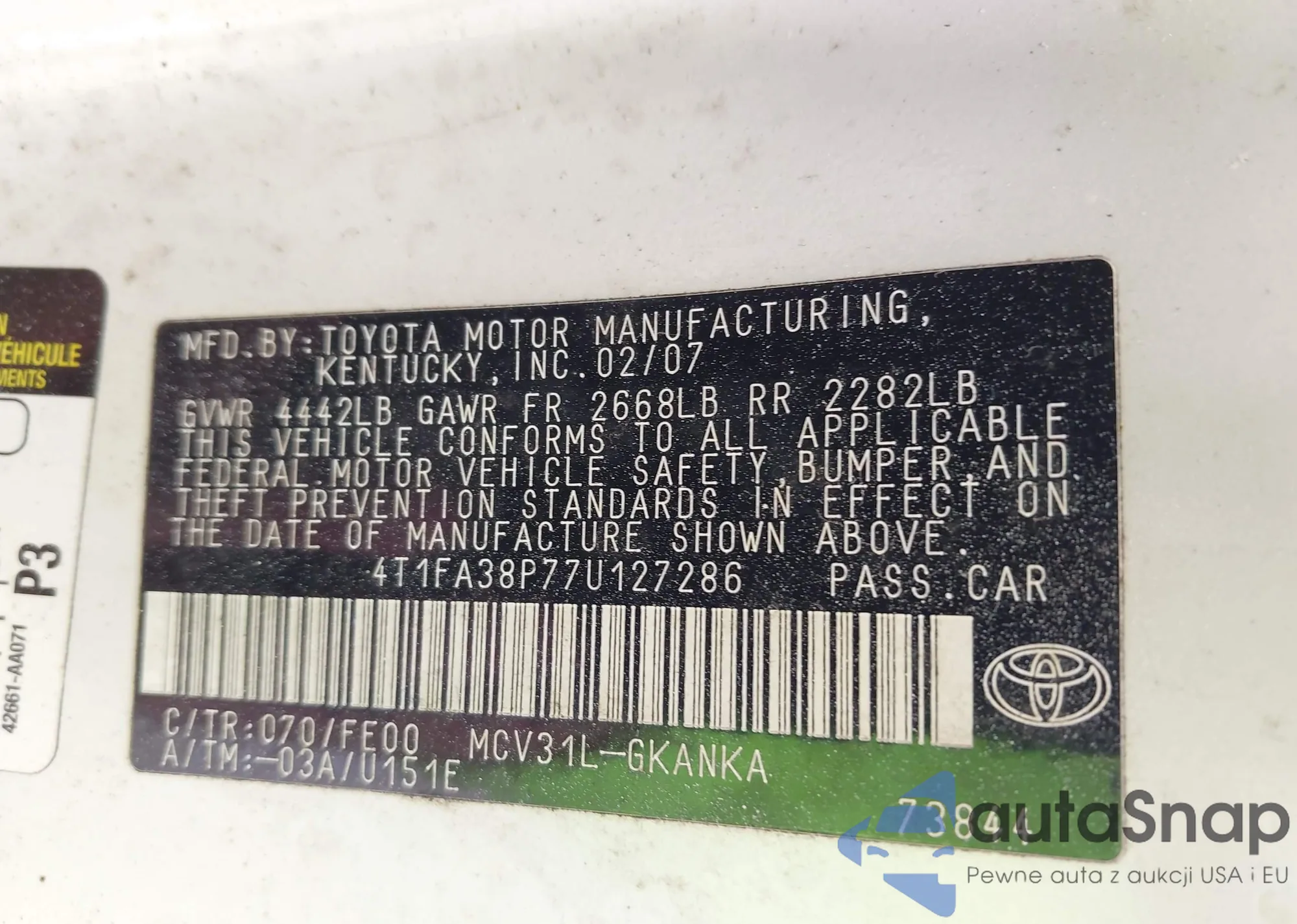 VIN: 4T1FA38P77U127286