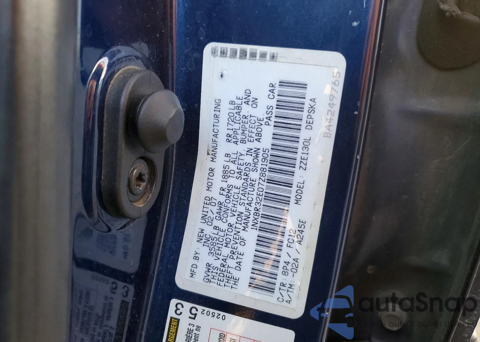 Samochód Toyota Corolla 2007 (VIN 1NXBR32E07Z881905) sprzedaje go niezweryfikowany sprzedawca. Zalecamy raport Carfax i potwierdzenie możliwości rejestracji pojazdu przed zakupem.