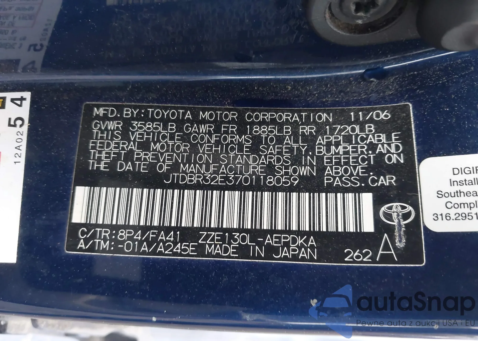 VIN: JTDBR32E370118059