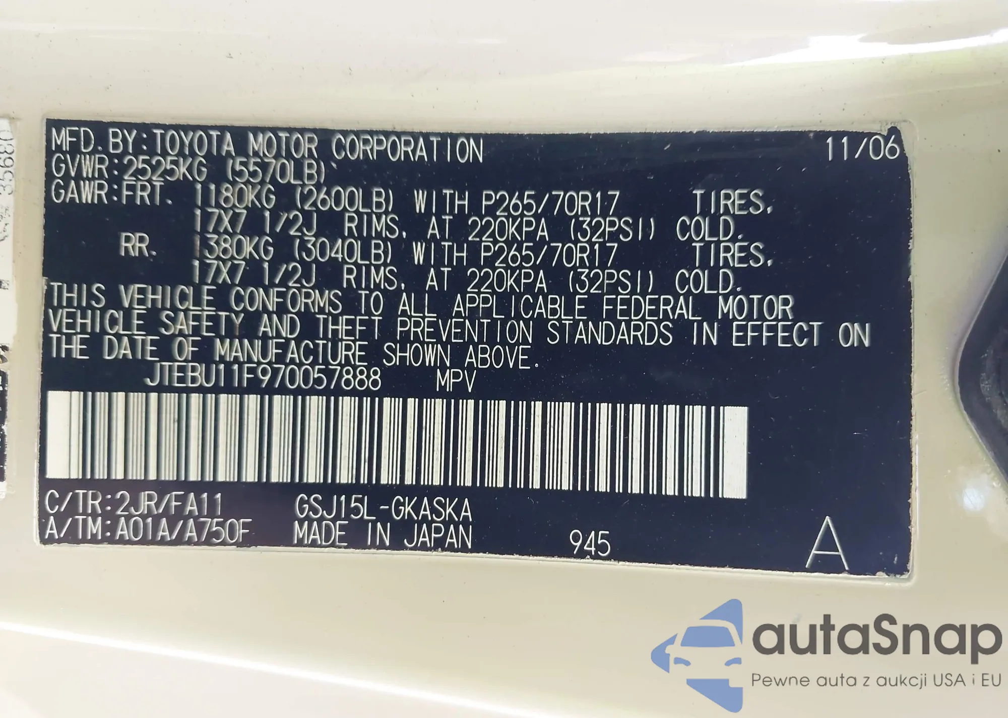 VIN: JTEBU11F970057888