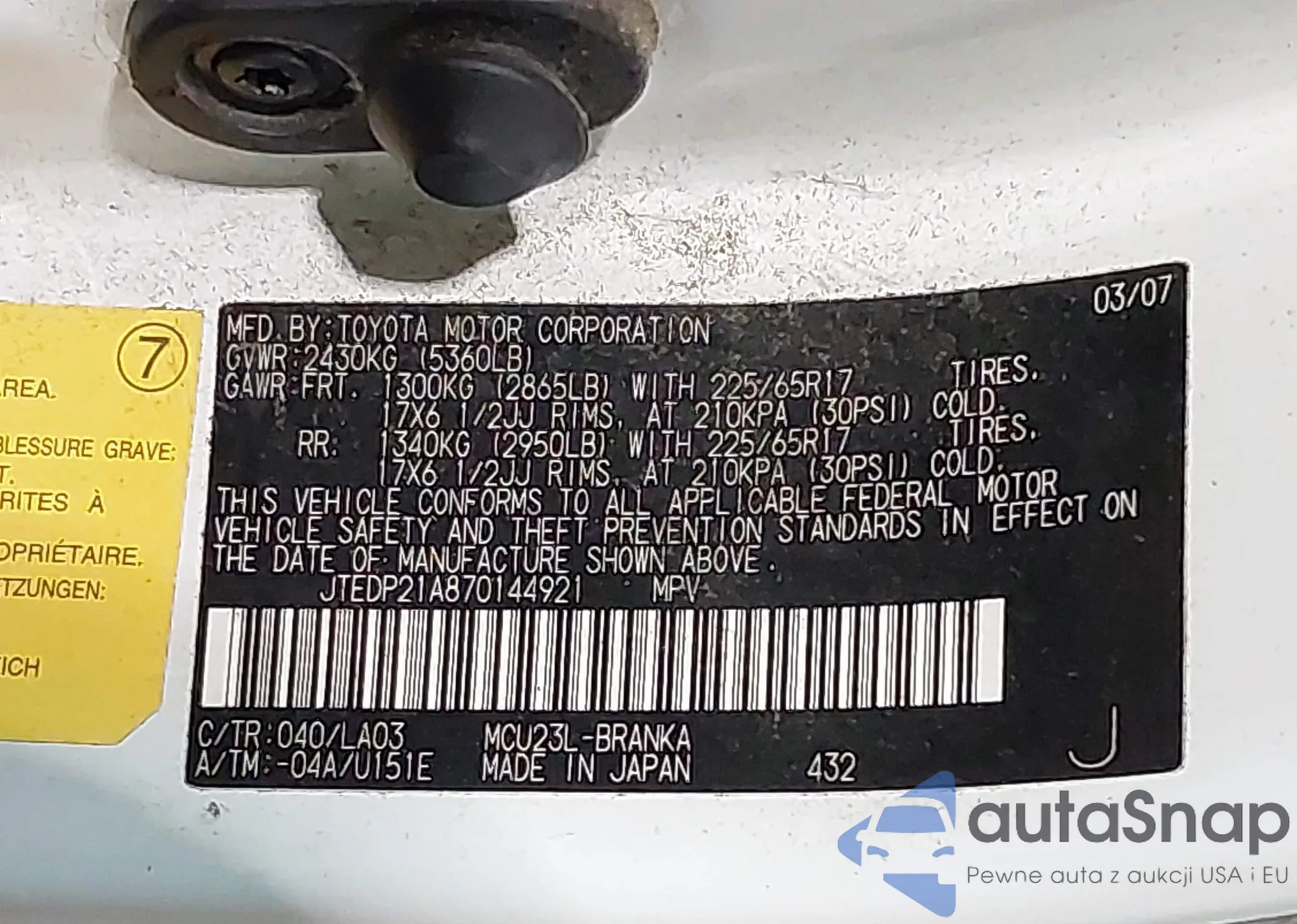 VIN: JTEDP21A870144921