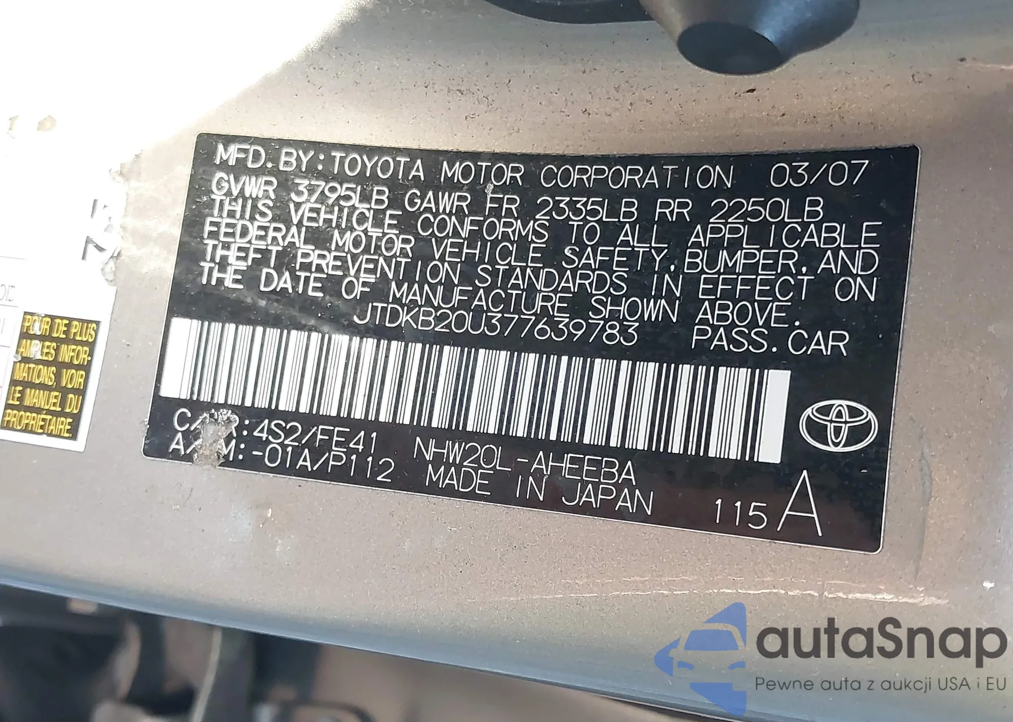 • VIN: JTDKB20U377639783