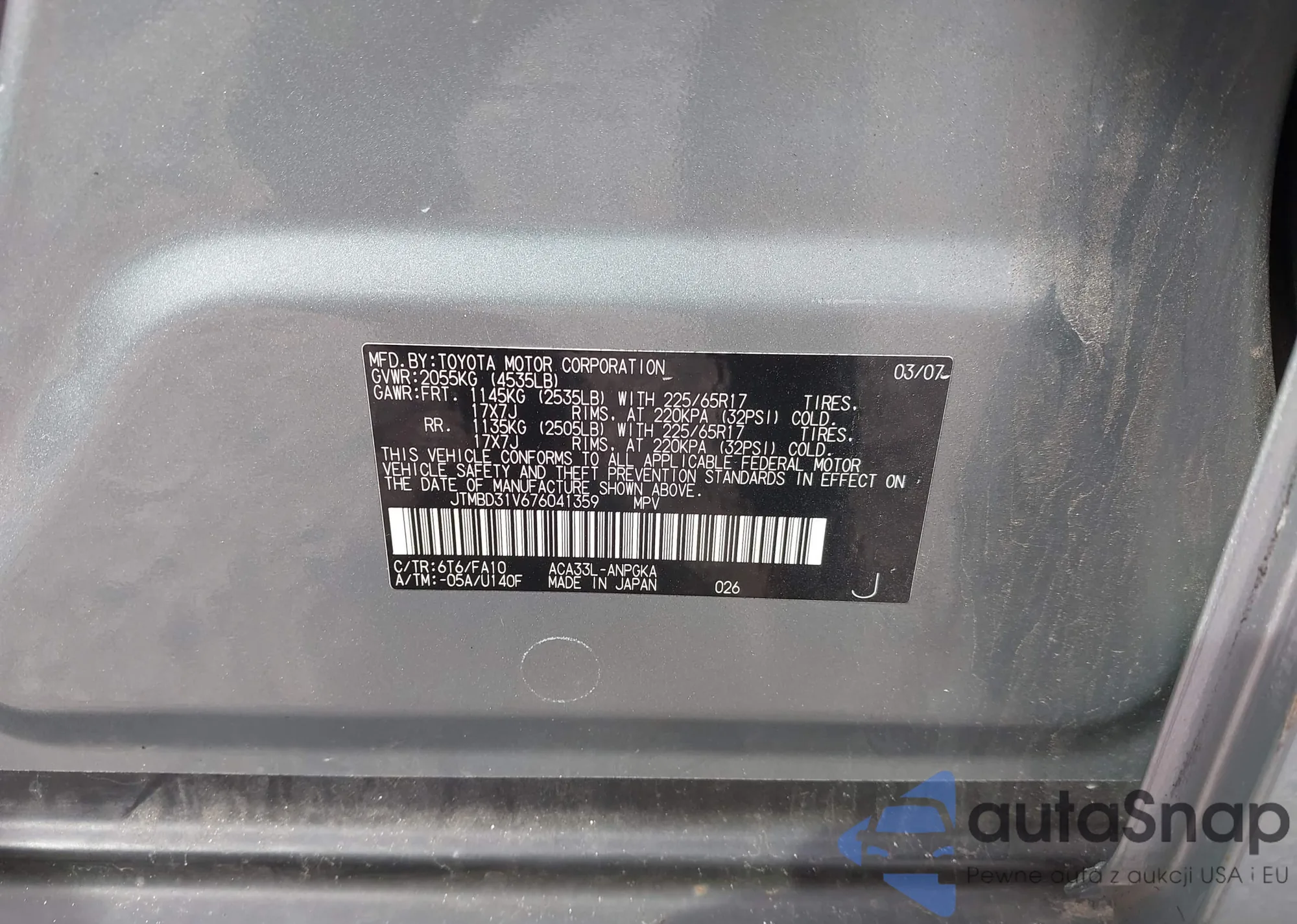 VIN: JTMBD31V676041359
