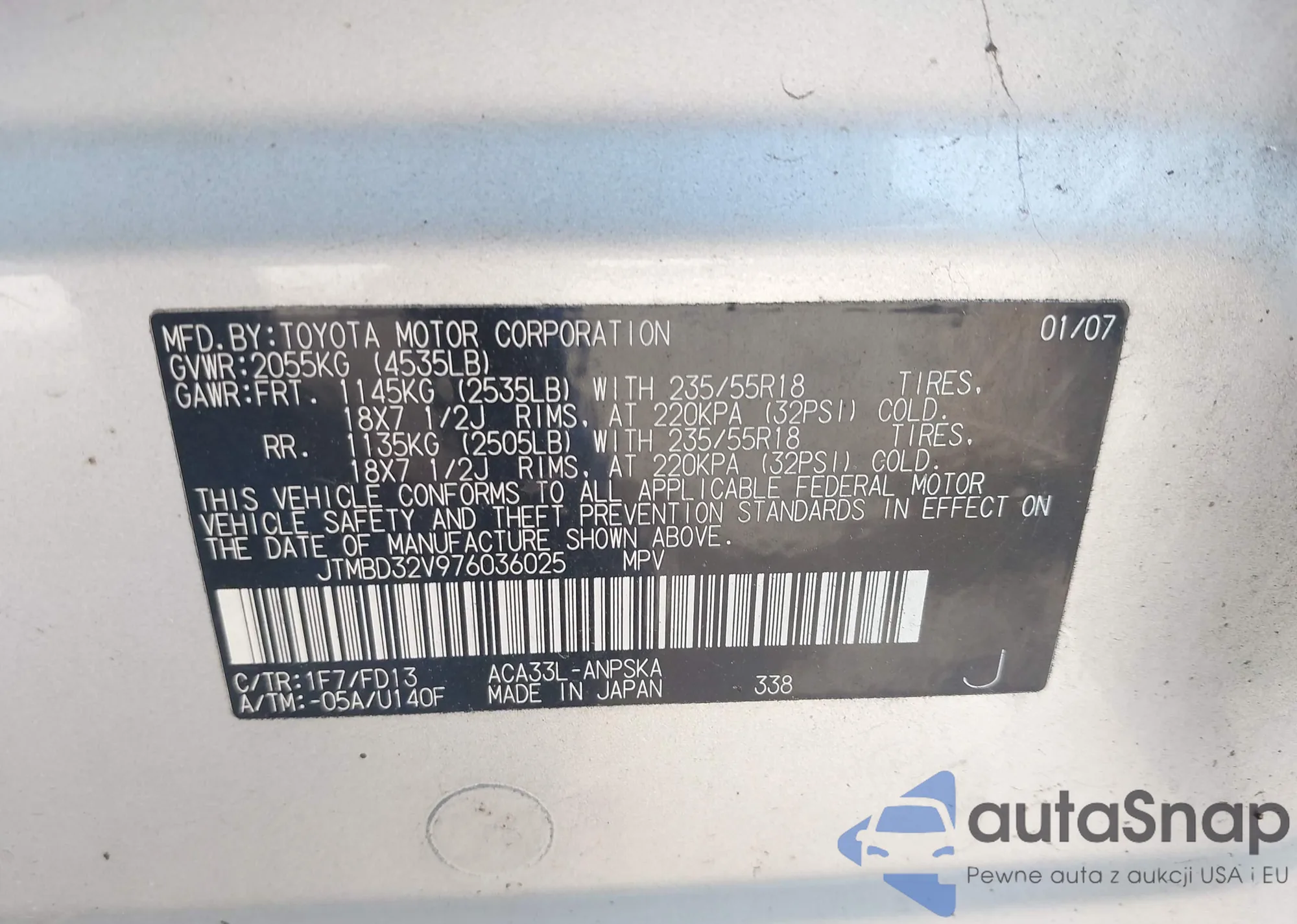 VIN: JTMBD32V976036025